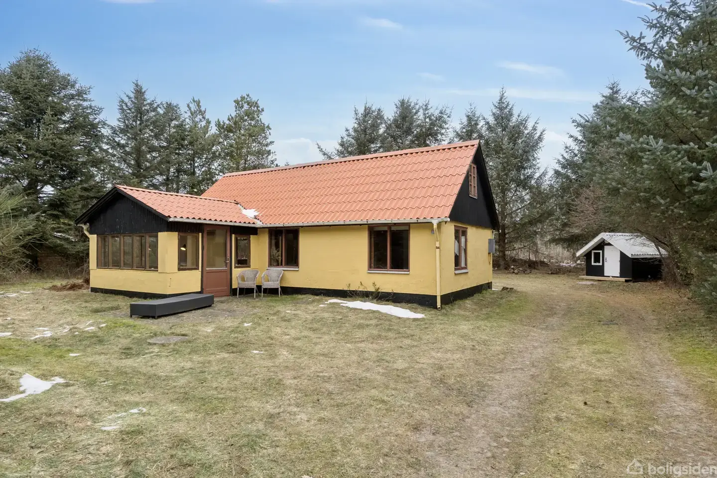 Midt i det eftertragtede Kryle Klit – omgivet af den karakteristiske vestkystnatur – ligger denne ejendom på en imponerende naturgrund på hele 1.602 m². Her er Vesterhavets brusen aldrig langt væk, og strand, skov og Blokhus by nås nemt til fods eller på cykel.Det eksisterende fritidshus er af ældre dato og fremstår med en enkel og funktionel planløsning bestående af entré, køkken/alrum/stue, badeværelse samt værelser, suppleret af anneks med ekstra sovepladser. Huset rummer i dag op til 8 sovep