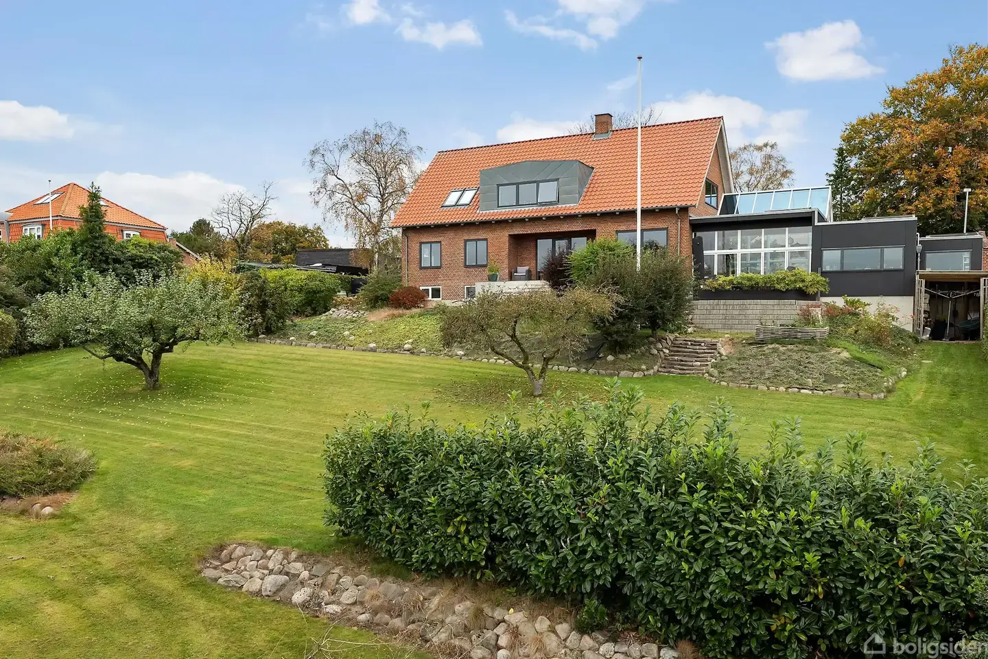 Åbent hus med tilmeldingskrav 3/2 - klik på billede - Velkommen til Rønne Allé 2 – en helt unik og højtbeliggende ejendom i det attraktive Dronningborg. Her får I en sjældent udbudt bolig, der forener klassisk charme med moderne komfort og en beliggenhed i særklasse. Villaen er oprindeligt opført i 1936 og siden ombygget i 1970, og byder på i alt 242 m² bolig, 134 m² fuldt anvendelig underetage samt et imponerende 42 m² orangeri skitseret af Caspersen & Krogh Arkitekter. Her bor I med en spektakulær udsigt over området og med kort afstand til indkøb, skole, institutioner, fritidsaktiviteter og naturskønne omgivelser ved Randers Fjord. Stueplan byder velkommen i en rummelig hall med gæstetoilet og adgang til et værelse. Derfra træder du ind i to store stuer en suite, hvoraf den ene har direkte udgang til en skøn terrasse. I forlængelse heraf finder du et lyst og indbydende køkken-alrum med god spiseplads – perfekt til både hverdagsliv og gæster. Fra køkkenet er der adgang til villaens absolutte hjerterum: et fantastisk orangeri med højt til loftet, elegant sildebensgulv og en betagende udsigt. Et oplagt leverum, der skaber en helt særlig stemning året rundt. Herfra er der direkte adgang til en rummelig dobbeltgarage med plads til både biler og værksted. 1. salen rummer fire gode værelser samt et stort og velindrettet badeværelse – ideelt til børnefamilien eller dem, der ønsker plads til kontor og gæster. Underetagen byder på et praktisk bryggers/vaskerum, køkken samt flere disponible rum med mange anvendelsesmuligheder – hvad enten du drømmer om hjemmebiograf, vinkælder, hobbyrum eller ekstra opbevaring. Her findes desuden et ekstra stort og lækkert badeværelse med både bruseniche og spa. Haven er et kapitel for sig selv – stor, ugeneret og med masser af muligheder for leg, ophold og afslapning. Flere hyggelige terrassemiljøer inviterer til både solbadning og sommeraftener med gæster. Ejendommen ligger i et roligt og trygt villakvarter med godt naboskab, nabohjælp og aktiv grundejerforening. Fra villaen er der kort gåafstand til både Rema1000, Netto, Dronningborghallen, Rismølleskolen, vuggestue, boldbaner og grønne områder ved fjorden. Desuden er der nem adgang til Randers midtby og motorvejsnettet. Denne villa skal opleves! Kontakt os for en fremvisning – her får du en villa med sjæl, kant og arkitektoniske kvaliteter i absolut særklasse.