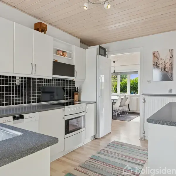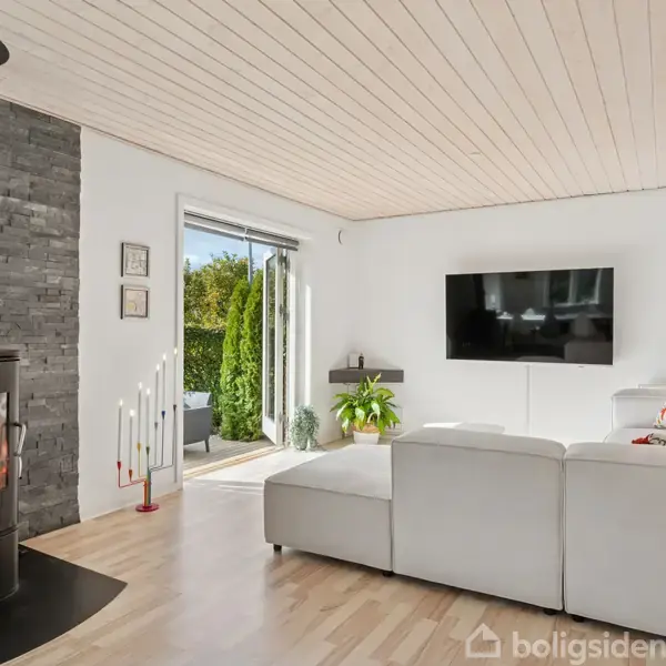 Indflytningsklar villa med stor garage  I krydsfeltet mellem Viborg, Holstebro, Herning og Silkeborg finder I hyggelige Frederiks, som er omgivet af skøn natur samt hverdagens fornødenheder. Haven er enormt hyggelig, lukket og privat, og huset fremstår lyst og velindrettet med tre værelser, store opholdsrum og to badeværelser, hvilket gør det ideelt for børnefamilien. Endelig er der en garage med værksted og toilet. Køkkenet er velholdt med lyse fronter og mørke bordplader. I åben forbindelse ud