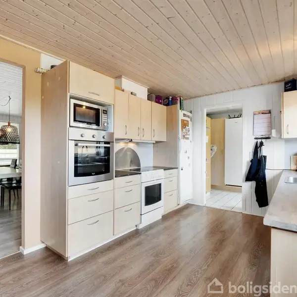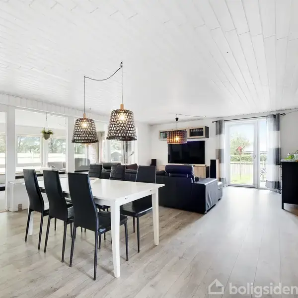 1-plansvilla beliggende for enden af en blind villavej.Det er tæt på indkøb og offentlig transport. Endvidere er der kun ca. 700 meter til skolen og Hannæs Børnehus med børnehave og vuggestue. Indrettet med: entré, køkken med stor åbning ind til opholdsstuen. Fra opholdsstuen er der terrassedør til en vest-vendt terrasse, og der er udgang til en tidligere udestue. Udestuen er efterfølgende blevet isoleret og er med gulvvarme, og er registeret som boligareal. Dejligt badeværelse med bruseniche og