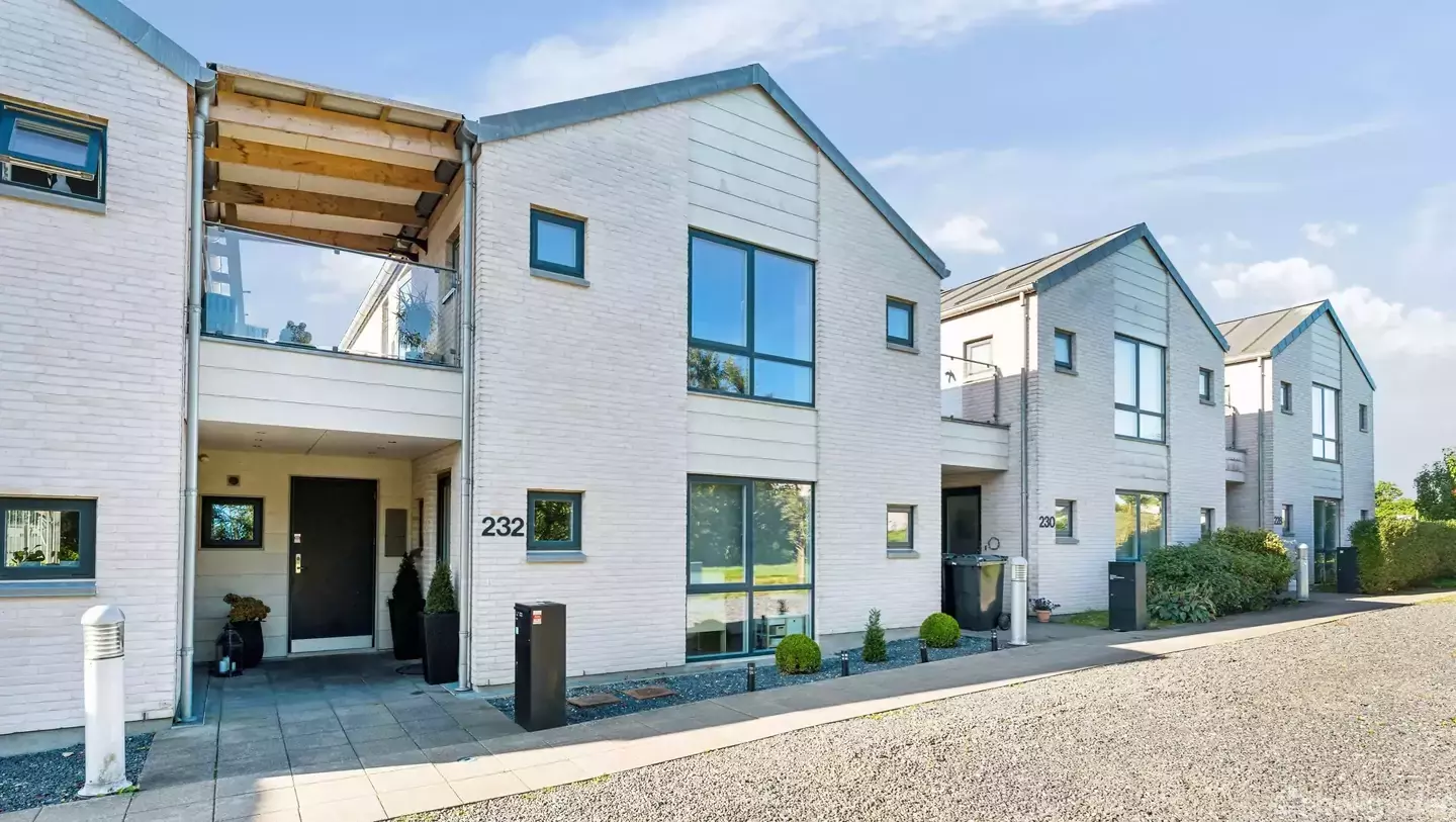 Indbydende kædevilla i den helt rigtige stil med lækre terrasser!