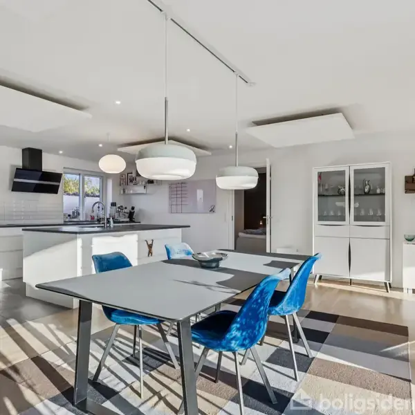 Velkommen til Rønøvej 8 – en moderne og særdeles velindrettet villa, hvor både beliggenhed, planløsning og komfort går op i en højere enhed. Ejendommen byder på dobbelt carport og en rolig placering, der gør hverdagen både tryg og privat. Allerede i den rummelige entré fornemmes husets kvalitet og gennemtænkte indretning, hvor der er god plads til både familien og gæster. Det funktionelle bryggers er indrettet med masser af skabsplads og gør hverdagens praktiske gøremål lette. Villaen rummer hele fire gode værelser, opdelt i børne- og forældreafdeling. Forældreafdelingen byder på en elegant walk-in-løsning, mens de øvrige tre værelser alle har rigtig gode størrelser og mange indretningsmuligheder. Hertil kommer to stilrene badeværelser, begge udført i et tidløst design og med separat bruseniche. Husets absolutte samlingspunkt er det store, lyse køkken-alrum i åben forbindelse med stuen. Det er her, hverdagen leves, og hvor fødselsdage, fester og hyggelige sammenkomster naturligt finder sted. Fra alrummet er der direkte udgang til haven og den skønne sydvendte terrasse, som indbyder til solrige dage og lange sommeraftener. Ejendommen er naturligvis udstyret med gulvvarme overalt samt fibernet, så komfort og moderne bekvemmeligheder er helt på plads. En villa, der skal opleves – og som sjældent udbydes i dette attraktive område. Skynd jer, før det er for sent. Velkommen til Rønøvej 8, 3630 Jægerspris.