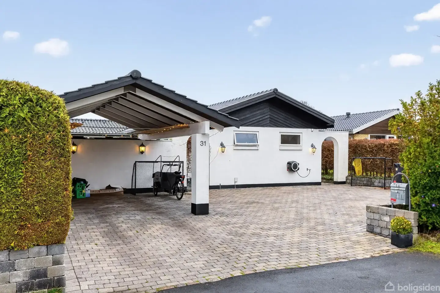 For enden af den lukkede villavej på Rørkær ligger dette smukke og meget rummelige hus, som med sin placering direkte ud til de populære stisystemer giver jer den perfekte kombination af ro, tryghed og let adgang til natur og nærområde. Her får I et hjem, der både imponerer i sin størrelse og i sin gennemtænkte indretning. Vi træder ind i en imponerende stor entré, som straks giver en fornemmelse af luft og overskud. Herfra fører fordelingsgangen til to gode værelser, som tidligere har været opd