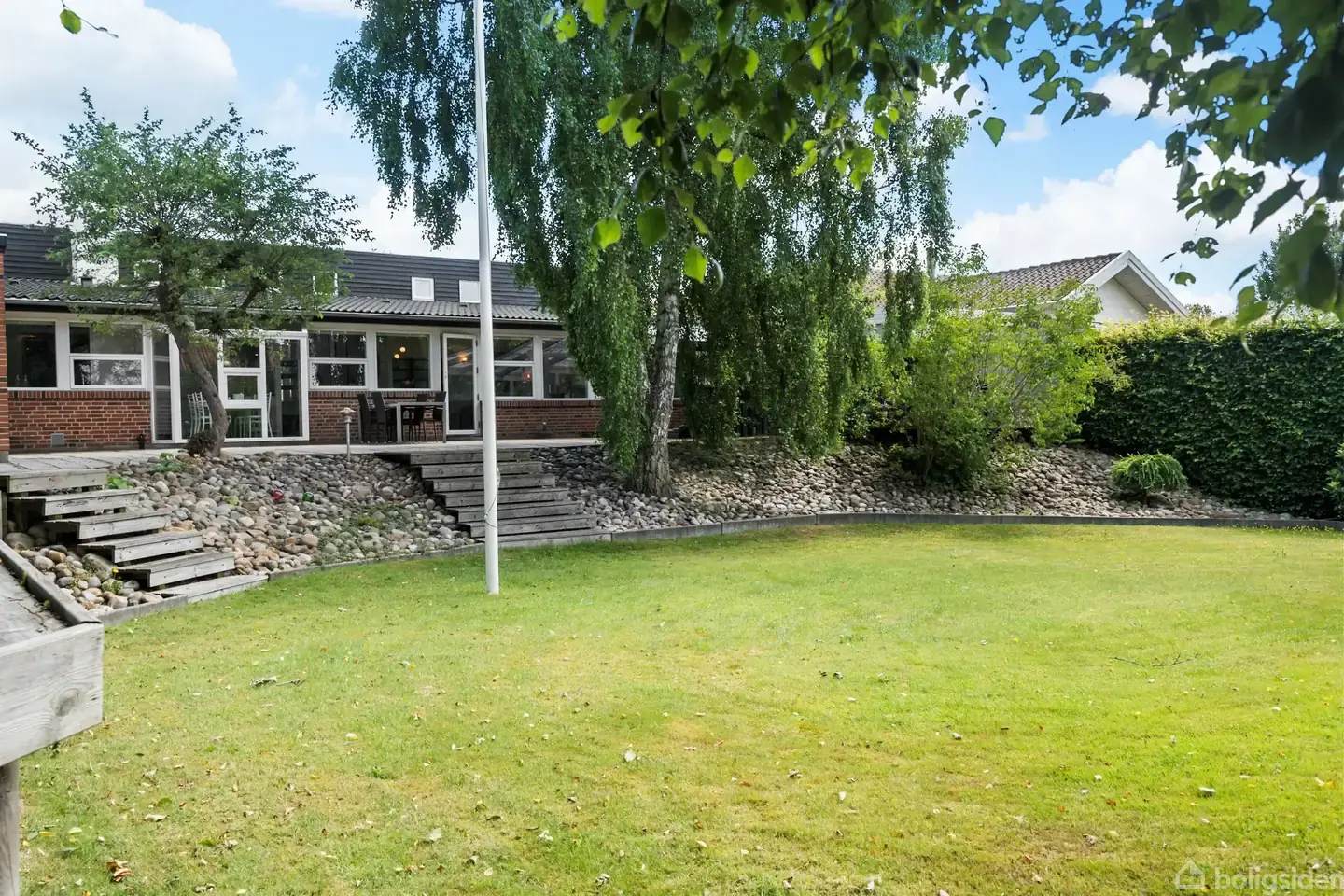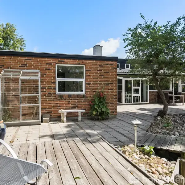 Velkommen til denne dejlige villa, der skiller sig ud med både beliggenhed, arkitektur og en yderst gennemført haveoase. Her får du ikke bare en bolig – du får et hjem, hvor lysindfald, udsigt og grønne omgivelser er i fokus. Boligen fremstår klassisk og solid med sin rødbrune murstensfacade og det sorte tag, men den arkitektoniske planløsning og de forskudte niveauer løfter huset op over almindelig standard. Her får du store vinduespartier, der giver et skønt dagslys og en oplevelse af rummelighed, som sjældent ses. Planløsningen er gennemtænkt: Boligen indeholder tre gode værelser, et velholdt og funktionelt køkken med spiseplads samt en stor, lys opholdsstue med udgang til terrassen og den smukke baghave. Herudover får du hele to badeværelser – begge pænt indrettede og praktiske – hvilket er en sjælden luksus og ideelt til børnefamilier eller dig, der ofte har gæster. En praktisk detalje, som mange vil sætte pris på, er carporten med direkte adgang til bryggerset. Her kan du træde tørskoet ind med indkøbsposerne eller ungerne – uanset vejret. Og som en ekstra bonus ligger et rummeligt værksted i forlængelse af carporten – perfekt til kreativhule, keramik – kun fantasien sætter grænser. Underetagen byder på fire lyse og indbydende disponible rum med god loftshøjde – perfekt til at skabe lige præcis det, du drømmer om: en hyggelig tv-stue, en stilfuld Man Cave, et inspirerende hjemmekontor eller klinikrum – eller måske et fedt gamerrum. Haven er noget for sig selv, den er overskuelig og nem at lukke af, hvis der er børn eller husdyr, så du trygt kan lade de små lege frit. Den er smukt anlagt i flere niveauer med stensætninger, bede og frodig beplantning. Her findes flere terrasser med sol og læ på forskellige tidspunkter af dagen, og hele haven emmer af ro og privatliv. I bunden af haven venter et lille bålsted omkranset af træer og grønne buske – det perfekte sted til at samle familie og venner en lun sommeraften. Her er med andre ord masser af uderum, der kan bruges både aktivt og rekreativt, og samtidig kræver haven minimal vedligeholdelse. Ejendommen ligger roligt i et lukket og børnevenligt kvarter uden gennemkørende trafik. Her er trygge rammer og et godt naboskab. Samtidig er der kort afstand til både skole, børnehave, indkøb, stranden og offentlig transport – alt det, der gør hverdagen nem og bekvem. Kort sagt: En rummelig og charmerende bolig med sjæl, gode detaljer og masser af funktionelle løsninger – ikke mindst to badeværelser, carport og værksted, som gør hverdagen nem. En bolig, der skal opleves, hvis du leder efter mere end det sædvanlige. Kontakt os gerne for en fremvisning – vi glæder os til at vise dig rundt!
