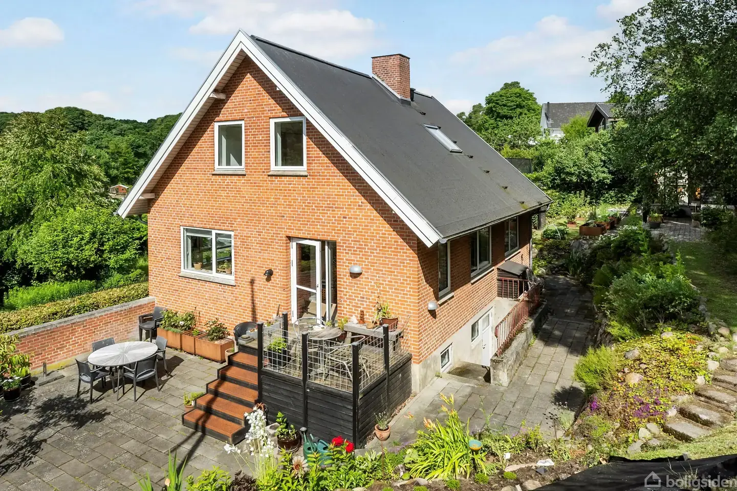 Åbent hus med tilmeldingskrav 12/2 - klik på billede - Et sted, man ikke finder – men falder for. Midt i de bakkede landskaber ved Dollerup Bakker, i noget af Danmarks smukkeste og mest stemningsfulde natur, ligger denne helt særlige villa. I kort gåafstand fra Hald Sø med helårsbadning, omgivet af hesteenge, skov og små snoede stier, der indbyder til lange gåture og stille øjeblikke, finder du et fristed, som sjældent udbydes – og endnu sjældnere kan genskabes. Ejendommen er smukt placeret på en kuperet grund med en betagende udsigt over landskabet, hvor naturen konstant skifter udtryk med årstiderne. Her lever du med udsigten som en del af hverdagen – fra morgendis over bakkerne til aftensolens varme farver. Samtidig er boligen energioptimeret med solceller på taget, luft-til-luft-varmepumpe og en imponerende masseovn, der forener funktion, æstetik og varme på fornem vis. Fra vejniveau træder du ind i det nederste plan, hvor en indbydende entré byder velkommen. Her finder du et lyst badeværelse, praktisk bryggers samt et stort og lækkert disponibelt rum med gulvvarme – perfekt til gæster, hobby, træning eller kreativ udfoldelse. Centralt i rummet står den smukke masseovn, som både varmer huset op og fungerer som et arkitektonisk omdrejningspunkt. En elegant trappe fører dig op til stueplanet, hvor lys, luft og naturen for alvor tager over. Den store stue har et fantastisk lysindfald og panoramaudsigt over landskabet, suppleret af en brændeovn, der understreger husets varme stemning. Køkkenet er et eksklusivt Unoform-køkken i absolut topkvalitet – herfra er der direkte udgang til en solrig og læfyldt terrasse, hvor udelivet smelter sammen med naturen omkring dig. På førstesalen finder du et rummeligt repos, som i dag anvendes som hjemmekontor, endnu et lyst badeværelse med gulvvarme samt et skønt soveværelse, hvor roen og udsigten sætter tempoet – og hvor morgener starter langsommere. Dette er ikke en bolig for alle. Det er for dem, der værdsætter naturens stilhed, æstetik og nærvær – og som drømmer om en hverdag, hvor omgivelserne er lige så vigtige som murstenene. En sjælden mulighed i et af Danmarks mest betagende naturområder.