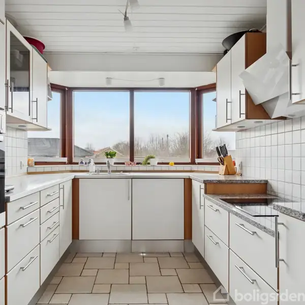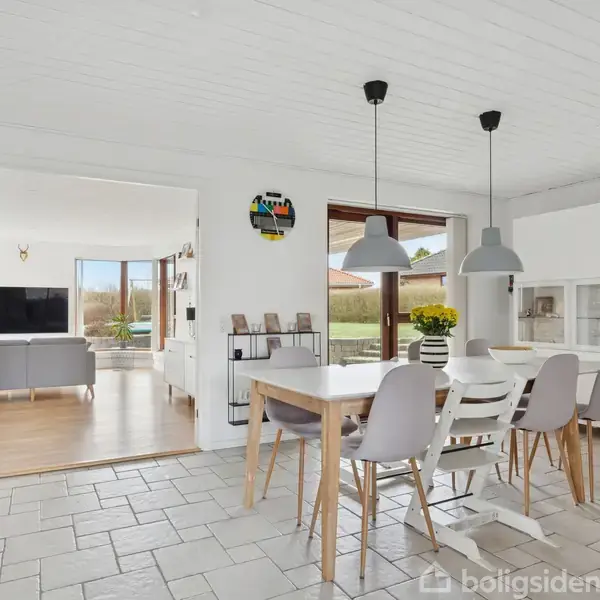 Velindrettet villa fra 2005 med 3 gode værelser på 126 m² i ét plan.Villaen fra 2005 ligger på en grund på 712 m² og byder på 126 m² i ét plan med tre soveværelser, en lys stue og åben planløsning mellem køkken og alrum. Her er plads til både familieliv og ro. Det veldesignede hjem har store vinduespartier, der sikrer et dejligt lysindfald og en fornem forbindelse til udendørsarealerne. Carport med skur giver mulighed for både parkering og opbevaring, og den funktionelle planløsning sikrer nem a