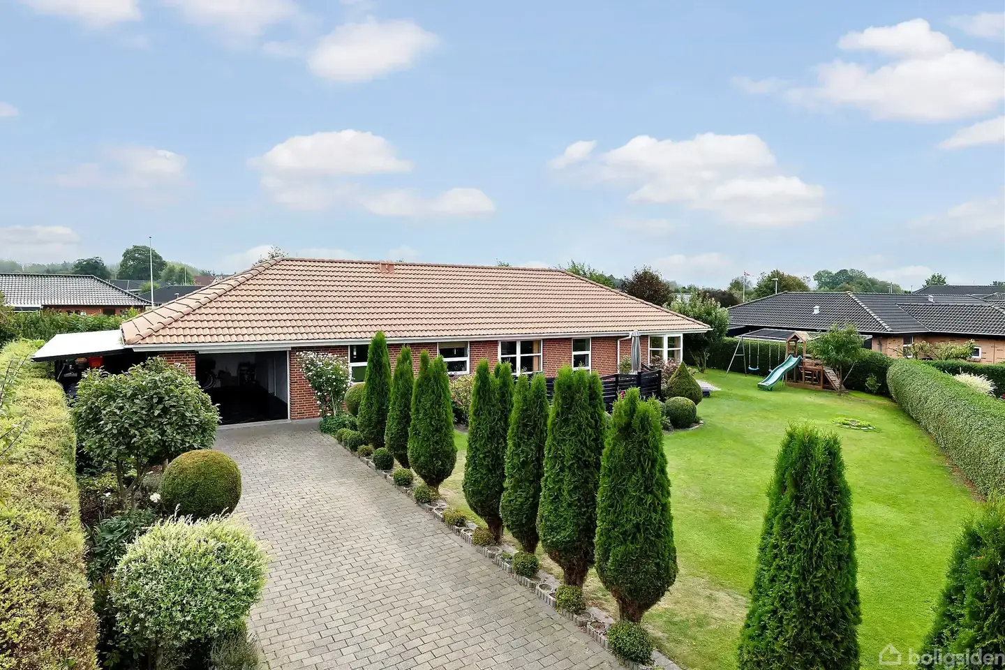 Åbent hus med tilmeldingskrav 12/2 - klik på billede - Familievenlig 1-plansvilla med garage i meget attraktivt område i Kjellerup Velkommen til Rosenhaven 7 Denne flotte 1-plansvilla er ideel for børnefamilien såvel som for par, der drømmer om et hjem med rolige rammer og en velfungerende hverdag i et særdeles attraktivt område i Kjellerup. Boligen rummer 120 m² med en funktionel og gennemtænkt planløsning, der byder på hele 4 gode værelser samt lyse og indbydende opholdsrum. Hjertet i hjemmet er det velindrettede HTH-køkken, som ligger i åben forbindelse med stuen. Her sørger den flotte karnap for et skønt lysindfald og en behagelig atmosfære. Fra køkkenalrummet er der direkte udgang til en lækkert anlagt træterrasse, der er syd- og vestvendt, så solen kan nydes hele dagen og langt ud på de lune sommeraftener. Badeværelset er ligeledes fra HTH og fremstår tidløst og funktionelt. Villaen er opført i 2002 og fremstår velholdt med gulvvarme i hele huset samt opvarmning via fjernvarme, hvilket sikrer en behagelig og energieffektiv varme året rundt. Den tilhørende garage giver både praktisk opbevaringsplads og ekstra komfort i hverdagen. Haven er nem at holde og indbyder til både leg og boldspil for børnene. Grunden er meget plan, hvilket gør den ideel til robotplæneklipper, så havearbejdet kan klares nemt og effektivt. Her er der god plads til udeliv, afslapning og børnenes udfoldelser. Beliggenheden i et roligt og attraktivt kvarter giver kort afstand til skole, indkøb, fritidsaktiviteter og grønne områder – perfekte rammer for et trygt og velfungerende familieliv. Kom og oplev Rosenhaven 7 ring på 86 88 28 22 alle ugens dage.
