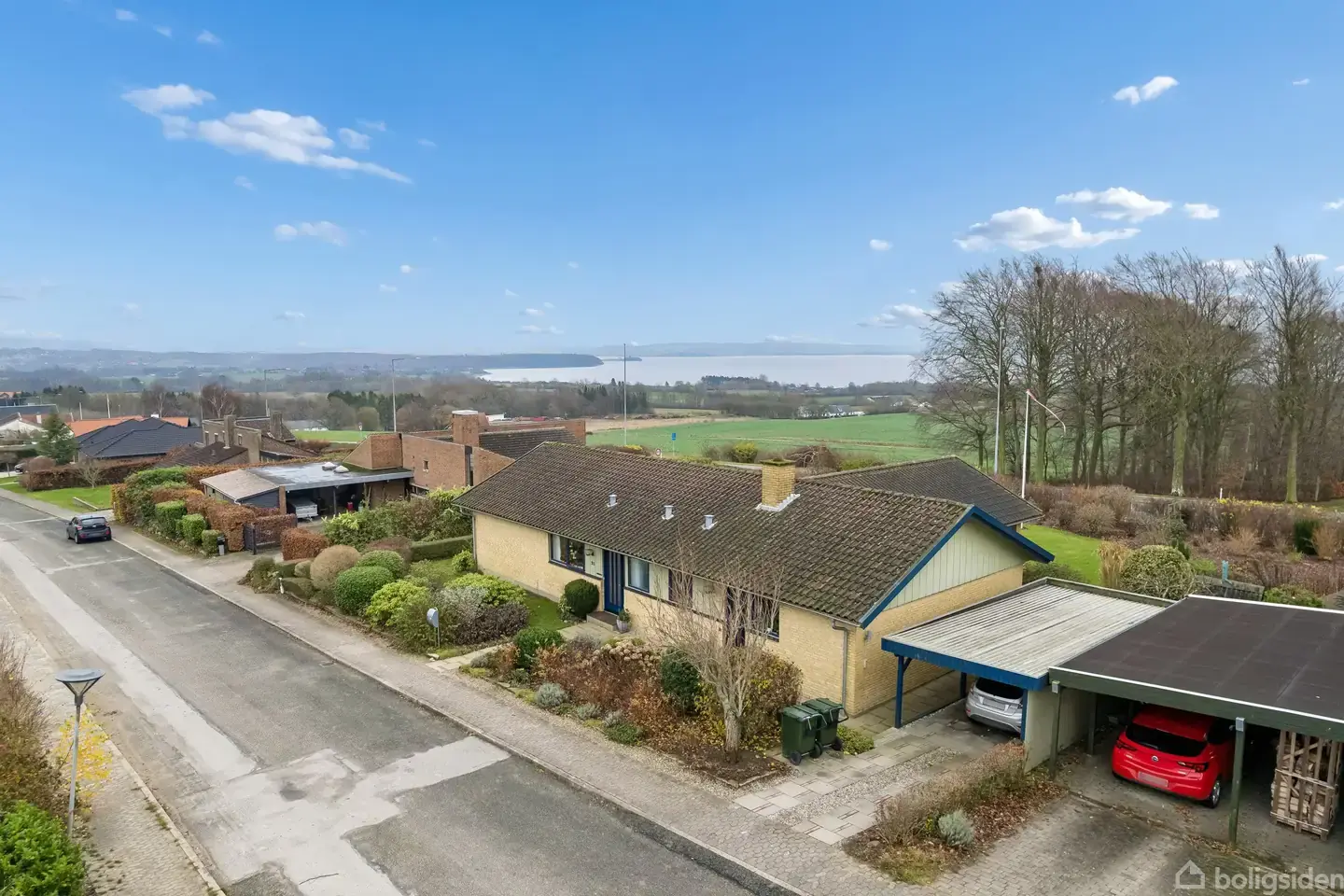 Nybolig Rønde har fornøjelsen af at præsentere denne særdeles velholdte murstensvilla på Rosenhøjvej 21 i Ugelbølle – en kvalitetsvilla på ca. 220 etagemeter beliggende på en 1.202 m² stor grund med en af områdets mest betagende udsigter. Ejendommen er opført i 1967 og fremstår både indbydende og yderst velholdt, med en planløsning der passer perfekt til den moderne familie, dog med mulighed for at sætte sit helt eget præg. Allerede fra entréen mærker man den gode rumfordeling. Herfra er der adg