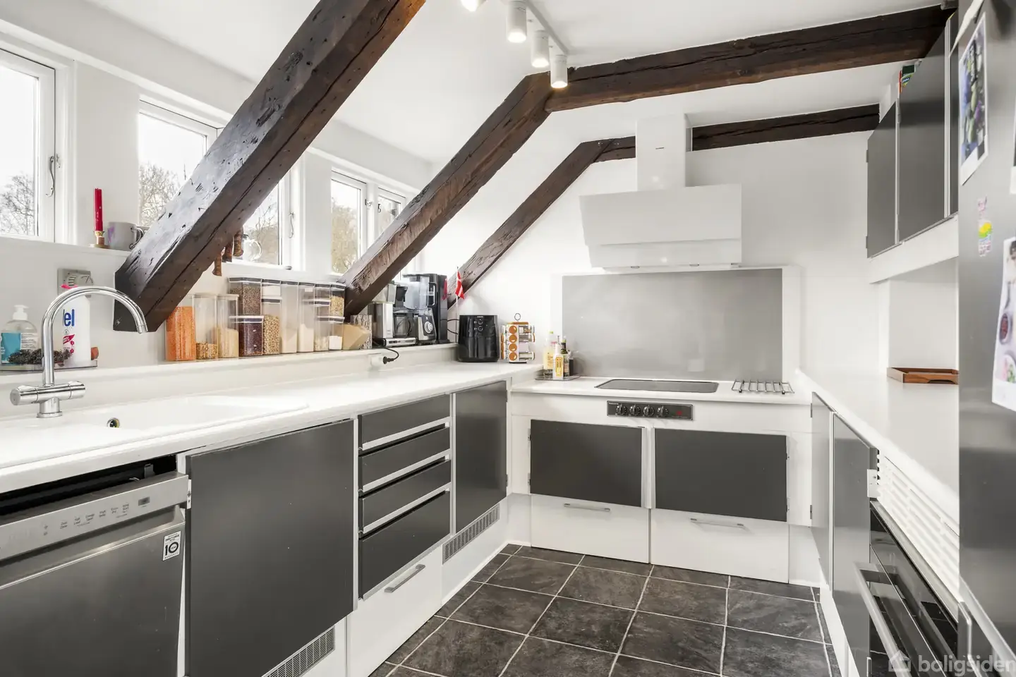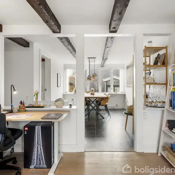 I træder ind i en lejlighed på i alt 101 m² med fem rum fordelt på køkken-alrum, stue og tre soveværelser, samt et rummeligt badeværelse. Beliggenheden for enden af gågaden giver direkte adgang til byens udvalg af butikker og caféer samtidig med, at ejendommen ligger i et roligt kvarter med grønne opholdsarealer. Facaden og indgangen giver et klassisk byhuspræg, der afrundes af en fælles gårdhave og et tilhørende græsareal. Planløsningen er funktionel og har fokus på samspillet mellem ophold