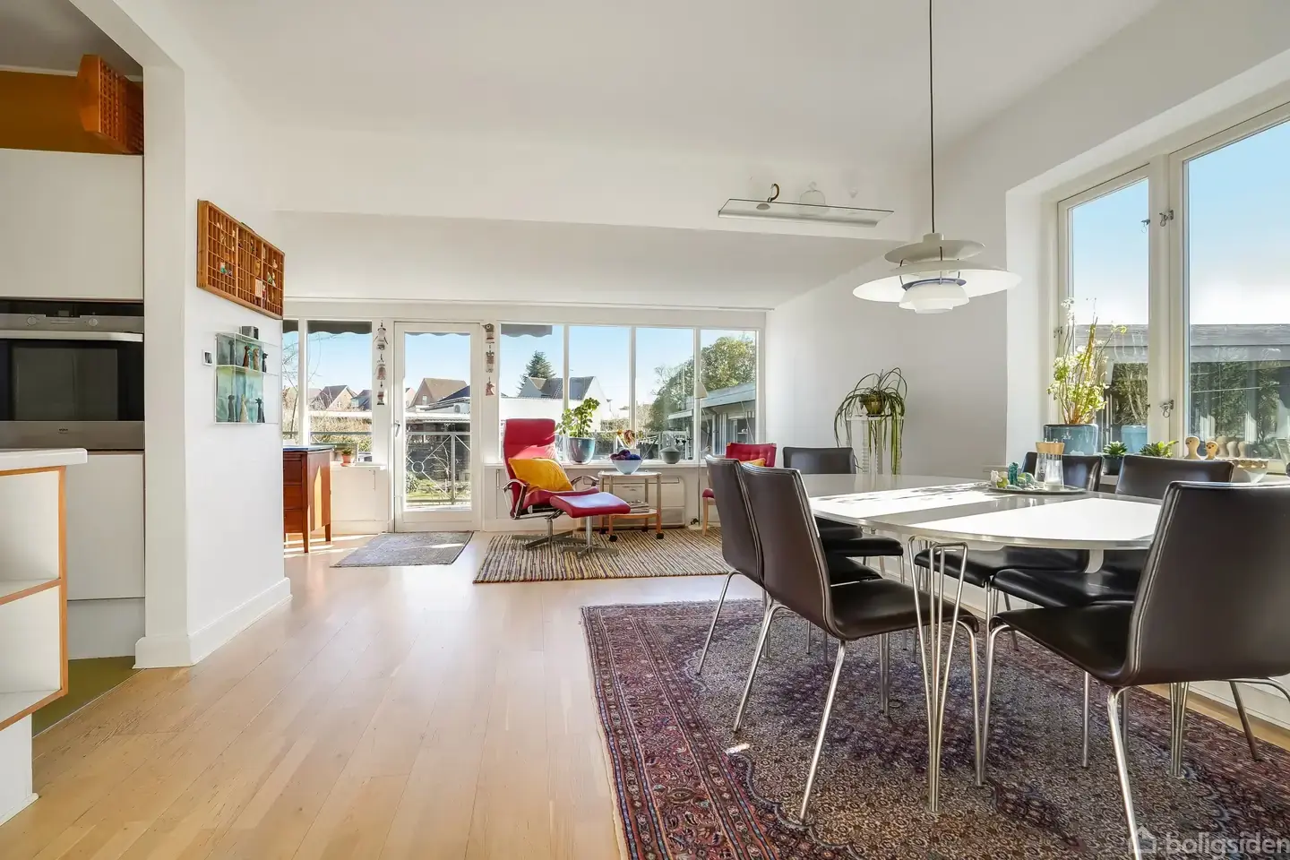 Der er noget særligt over Rosenvænget. Den rolige vej, de velholdte facader og fornemmelsen af et nabolag, hvor man hilser på hinanden. Her – få skridt fra Middelfarts levende bymidte – ligger en villa, der formår at forene klassisk charme med moderne funktionalitet. Et hjem, hvor lys strømmer ind gennem vinduerne, og hvor hverdagen føles lidt lettere. Når man træder ind, mærker man straks boligens varme og velkomst. Entréen byder på et smukt trappeløb til førstesalen og leder dig ind i det sto