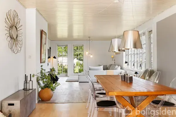 Denne velholdte villa til salg på Rosenvangsvej 38 i Greve byder på 212 m² bolig i ét plan, forenet med en af byens mest eftertragtede beliggenheder. Huset blev gennemgribende renoveret i 2008 og fremstår som en moderne perle, hvor funktionalitet og æstetik mødes. Et særligt højdepunkt er det imponerende køkken-alrum, der byder på et stilfuldt KVIK-køkken med Corian-bordplader fra 2022. Dette rum er hjemmets hjerte og skaber de perfekte rammer for både hverdagens aktiviteter og hyggelige stunde