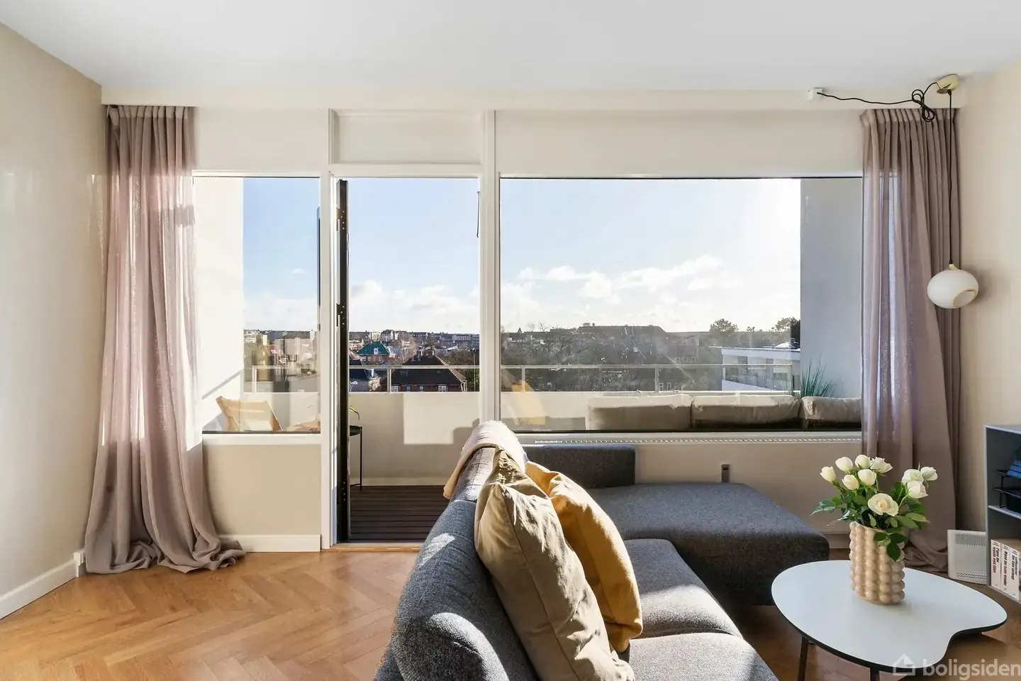 Her får man en lejlighed med veludnyttede kvadratmeter og et dejligt lysindfald fra det store vinduesfag. Ejendommen vender mod syd, hvilket gør, at lejligheden opleves ekstra lys og rummelig hele dagen. Bare se på billederne, hvordan lyset falder så smukt ind i lejligheden på en kold februar dag! Lejligheden fremstår i rigtig god stand og er klar til indflytning. Hjertet i lejligheden er uden tvivl det store stue/køkken/alrum i ét, med plads til både spisebord og sofaarrangement. Køkkenet er moderne og flot og holdt helt enkelt med hvide fronter og en praktisk bordplade. Fra alrummet er der udgang til en ugenert sydvendt udsigtsaltan med kig til det skønne Blomsterkvarter. Her er der plads til både grillen og et hyggeligt havesæt. Lejligheden har god plads til både hverdag og gæster, og det flotte lysindfald skaber en behagelig atmosfære. Entréen har indbyggede garderobeskabe med plads til fodtøj og overtøj, og lejlighedens soveværelse er lyst og rummeligt med plads til dobbeltseng, skrivebord og stort klædeskab. Lækkert og smagfuldt badeværelse, der er en god størrelse og står indbydende med blå og hvide fliser. Der er både separat bruseniche og vaskemaskine. Der er pæne, nye gennemgående sildebensgulve i lejligheden. Virkelig veludført. Lejligheden er placeret i et attraktivt kvarter på Frederiksberg, hvor grænsen mellem by og natur synes at flyde sammen, med nærhed til Frederiksberg Have, Kongekvarteret, Søndermarken og Zoologisk Have, hvor det er oplagt at have årskort. Området har en central beliggenhed, gode træningsmuligheder samt flere indkøbsmuligheder findes inden for kort rækkevidde. Ejendommen er moderne og opført i 1972 og har et stort indgangsparti med elektrisk døråbner og elevator. Som beboer er der brugsret til cykelopbevaring samt depotrum i kælderen. Hertil er der mulighed for at benytte foreningens grønne arealer samt parkeringsanlæg i gården. Velkommen indenfor på Roskildevej 53, 4. - Azaleaparken.