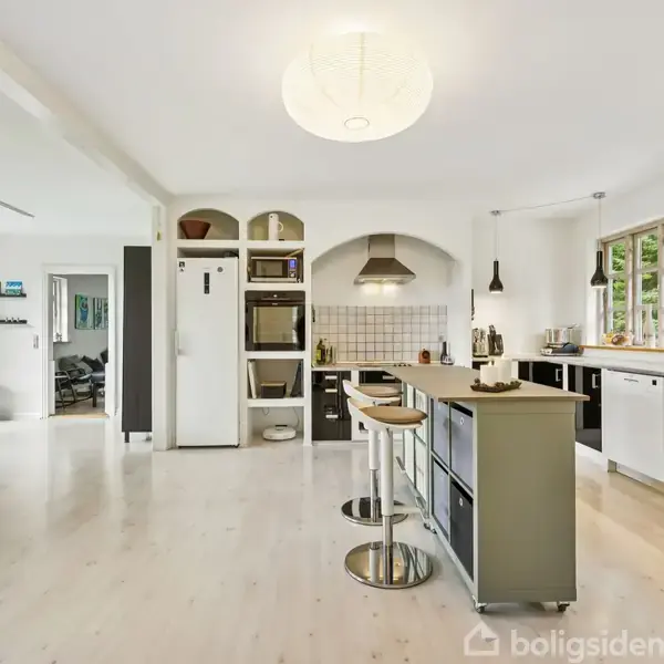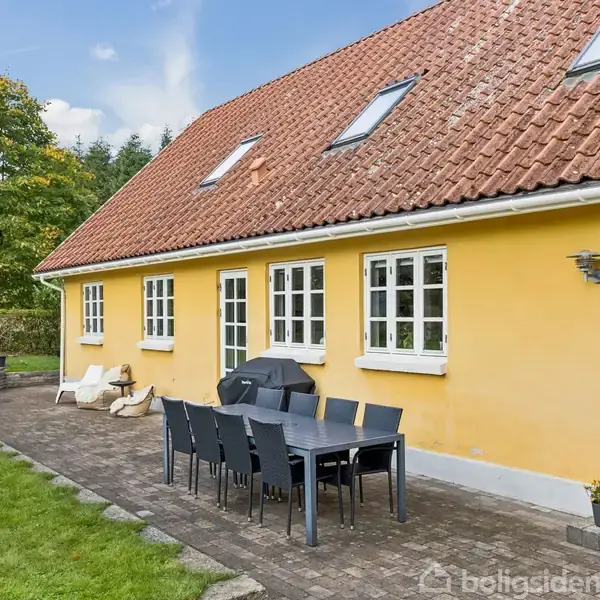 Der er noget særligt over huse, der lyser op i landskabet. På Rostrupvej 3 ligger et af dem. Den solgule facade, de røde tagsten og den grå sokkel får huset til at stråle som en sol i landsbyen – et symbol på glæde, varme og optimisme. Gul er farven på lys og liv, og det er præcis den stemning, du mærker, når du står foran døren. Her får du et hjem, der ikke bare ser indbydende ud, men som føles rigtigt fra det øjeblik, du træder ind. Med 225 m² fordelt på to plan og 36 m² kælder er boligen ideel til familien, der drømmer om lys, luft og masser af plads. Huset er nænsomt istandsat med respekt for sjælen og sans for detaljen. Indenfor med højt til loftet og hjerterum i hver en krog Allerede i bryggerset mærker man rummeligheden. Her er god plads til alt det praktiske og adgang til et stort badeværelse med bruseniche, håndklædetørrer og lyse, tidløse materialer. Fra bryggerset fører trappen ned til den tørre kælder, hvor gulvvarmen i hele stueplan styres – en praktisk detalje, der får hverdagen til at glide. Køkken-alrummet er husets naturlige hjerte. Et åbent og lyst rum, hvor lyset danser ind gennem vinduerne, og buerne over kogeområdet skaber et unikt og personligt udtryk. De indbyggede elementer i gasbeton giver et roligt, stilrent look, og her er masser af plads til både hverdagsmad og lange middage med familie og venner. Fra alrummet er der direkte udgang til den sydvendte fliseterrasse, hvor man kan nyde udsigten og de lange sommeraftener, mens solen går ned over markerne. Stueplan rummer desuden en hyggelig opholdsstue med træloft og et stort soveværelse med gulvvarme og god mulighed for skabsplads– perfekt som forældreafdeling sammen med husets andet badeværelse. Førstesalen – lys, luft og muligheder i massevis Når man kommer op ad trappen, åbner førstesalen sig som et lyst og indbydende rum med masser af plads og atmosfære. Her smelter repos og opholdsstue sammen i ét stort, åbent opholdsrum, hvor der både er plads til leg, afslapning og samvær. Plankegulvene binder det hele sammen med varme og karakter, og rummet fungerer perfekt som børnenes afdeling. Et sted, hvor de kan lege, se film eller bare være sammen. Etagen byder på hele fem værelser, hver med sit eget særpræg og et smukt lysindfald fra Velux-vinduerne. I den ene ende ligger to lyse børneværelser med udsigt mod gårdspladsen, hvor bøge- og egetræer danner en smuk grøn ramme omkring huset. I den anden ende finder du soveværelset med walk-in-closet og et roligt kig ud over markerne. De resterende værelser egner sig perfekt som kontor, legerum eller gæsteværelser alt efter familiens behov. Husets tredje badeværelse ligger centralt placeret, lyst, moderne og praktisk i forhold til førstesalens mange rum. Udeliv med sol, grønt og fællesskab Den solgule bolig fortsætter sin varme energi udenfor. Haven er grøn, enkel og omkranset af hæk og levende hegn, som giver privatliv og en rolig atmosfære omkring huset. Her er plads til trampolin, fodboldmål og leg, mens de voksne kan nyde den naturskønne beliggenhed og fornemmelsen af at være omgivet af grønne omgivelser. Den sydvendte terrasse inviterer til sommeraftener under åben himmel, og carporten med skur i sibirisk lærk fuldender helheden. Her leves livet i takt med naturen – til lyden af latter, fuglesang og en ro, der mærkes helt ind i kroppen. Et landsbyliv man ikke kan købe sig til – kun blive en del af Rostrup ved Gadbjerg er en lille perle i Vejle Kommune, præget af natur, ro og nærvær. Her bor du blandt åbne marker, skov og bakker – tæt på alt, men langt fra travlheden. Naboskabet er noget helt særligt. Her hjælper man hinanden, mødes til Sankt Hans og lokale sommerfester og skaber fællesskab på tværs af generationer. For enden af vejen holder skolebussen, der kører børnene trygt til Gadbjerg, hvor der både er skole, børnehave, vuggestue, sportshal og en hyggelig købmand, som fungerer som byens samlingspunkt. Byen har et aktivt foreningsliv, og du når både Give, Jelling, Billund og Vejle på blot 10–20 minutter. Kort sagt er Rostrup et sted, hvor man ikke bare bor – man hører til. Rostrupvej 3 er et hjem, der stråler i farve, sjæl og stemning. Et sted, hvor familien får plads, lyset får lov at fylde rummene, og fællesskabet står lige udenfor døren. Kontakt os allerede i dag – vi glæder os til at vise dig den gule villa i Rostrup.