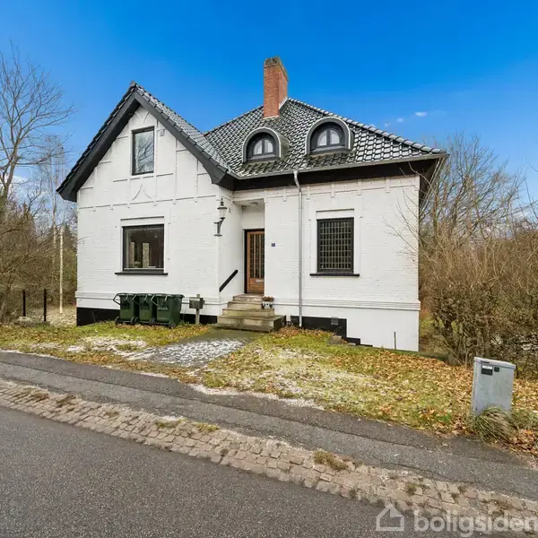 I udkanten af Allingåbro udbydes denne helt særlige og herskabelige ejendom fra 1908 – en bolig med sjæl, karakter og en unik grund med udsigt. Her får du 232 m² bolig i to plan samt fuld kælder, omgivet af en parklignende grund på hele 4.974 m². Huset fremstår i oprindelig stand, hvilket giver dig en unik mulighed for at skabe præcis det hjem, du drømmer om – i rammer, som sjældent udbydes til salg.Allerede ved ankomst står det klart, at huset er noget ud over det sædvanlige. Den hvidmalede fac
