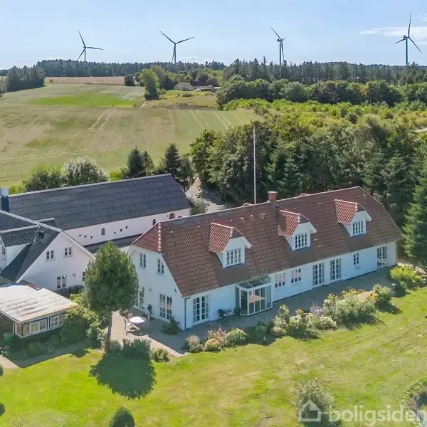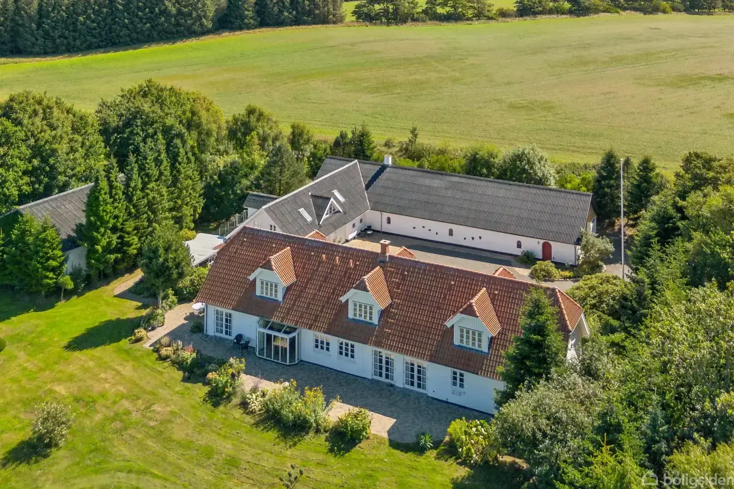 IDYLLISK EJENDOM MED NATURSKØN OG CENTRAL ADRESSE · Rendyrket idyl – et liv omgivet af landets ro · 42.125 m2 grund med søer, natur og plads til dyrehold · En arkitektonisk smuk ejendom fuld af atmosfære · Hvor flere generationer kan nyde livet sammen · Højt til himlen og grønt allevegne – en sand naturperle · Taget er skiftet på udbygningerne 2023 · Panasonic varmepumpe fra 2024 Åens rislende vand snor sig gennem det rolige, åbne landskab, som vækkes til live, når friske briser sætter bølgegang