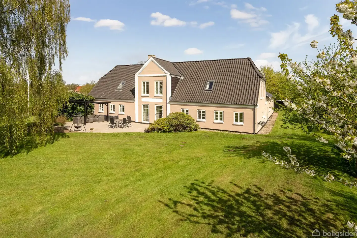 På Rubæk 4 venter en helt særlig ejendom – en smuk, arkitektonisk villa med gennemført stil og masser af plads, både inde og ude. Boligen ligger nær Skovby i naturskønne omgivelser med åbne marker som nærmeste nabo, og alligevel har du hverdagens bekvemmeligheder inden for rækkevidde. Her får du det bedste fra to verdener – landlig idyl og moderne komfort.Ejendommen har gennemgået en omfattende renovering, hvor både funktionalitet og æstetik er tænkt ind i hver en detalje. I 2010 blev villaen lø
