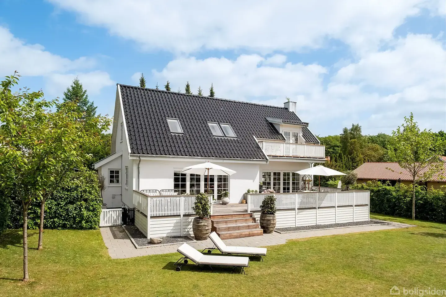 Åbent hus med tilmeldingskrav 1/2 - klik på billede - Denne skønne familievilla byder på hele 303 etagemeter, fordelt harmonisk over tre etager, og skaber en boligoplevelse præget af kvalitet, varme og fleksibilitet. Her får I et hjem, hvor klassisk arkitektur og moderne komfort går op i en højere enhed, og hvor store opholdsrum og et dejligt lysindfald sætter rammen om en indbydende hverdag. Stueplanet er boligens naturlige samlingspunkt. De store stuer ligger i åben forbindelse og byder på flotte sildebensparketgulve, smukke sprossede vinduer og direkte udgang til den imponerende træterrasse. Herfra flyder hverdagen let mellem inde og ude, og de rummelige miljøer indbyder både til afslapning, samvær og større middage. Køkkenet ligger praktisk i forlængelse af spisestuen og fremstår lyst og funktionelt med god arbejds- og opbevaringsplads. I forbindelse med opholdsstuen finder du et værelse, som er oplagt som kontor, gæsteværelse eller ekstra legeværelse til børnene. Derudover rummer etagen et pænt gæstetoilet/badeværelse. Den store og smukke træterrasse fungerer som en ekstra stue store dele af året. Her er plads til både lounge, spisning og solbadning, mens den grønne og private have danner en rolig ramme om udelivet. Den 1.049 m² store grund giver masser af albuerum og gode muligheder for både leg, ophold og ro. Førstesalen byder på en flot værelsesafdeling med loft til kip og masser af atmosfære. Her finder du to hyggelige børneværelser med ovenlysvinduer samt et større forældresoveværelse med walk-in-closet og udgang til en skøn balkon med udsigt til områdets smukke natur. Badeværelset på etagen er lyst, rummeligt og elegant med et dejligt lysindfald og kig til havens trækroner. Kælderen på 104 m² giver boligen en ekstra dimension og rummer både multirum, fitnessområde, hobbyrum, ekstra værelse, toilet, badefaciliteter og bryggers. Etagen er ideel til alt fra teenageafdeling til hobbyaktiviteter og opbevaring – en fleksibel og funktionel del af boligen, som familien kan indrette efter behov. Villaen ligger i et af Holtes mest eftertragtede områder – fredeligt og naturskønt, men samtidig tæt på alt, hvad du behøver i hverdagen. Indkøbsmuligheder, S-tog og Holte Midtpunkt ligger inden for kort afstand, mens Rudeskov, Furesøen og Vejlesø inviterer til utallige udendørsaktiviteter. Desuden ligger flere af Holtes bedste skoler i gåafstand, hvilket gør området ideelt for den aktive og moderne familie.