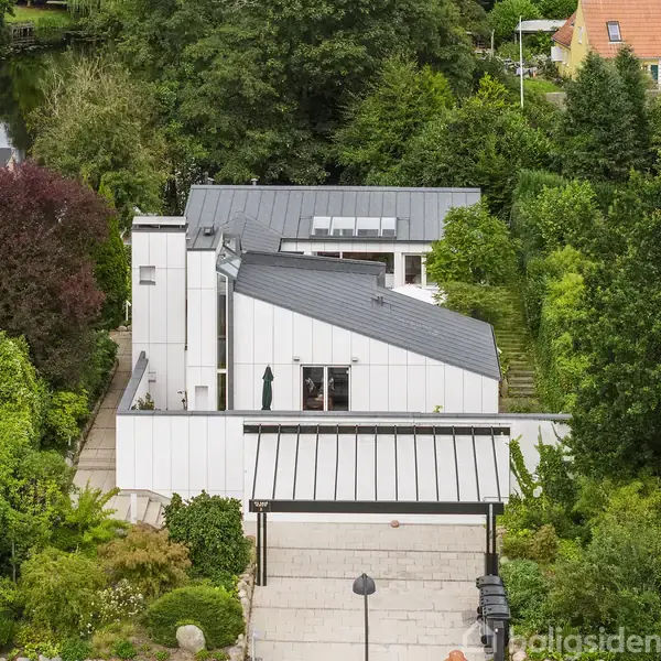 Arkitekttegnet pragtvilla med direkte adgang til søen og privat bådebroEnestående gårdhave, fredelige omgivelser og sjældent lysindfaldOpført i 1957 og efterfølgende udbygget til en arkitektonisk perle med rene linjer, markante detaljer og en helt særlig atmosfære. Fra haven er der direkte adgang til søen og til egen bådebro – en sjælden mulighed for at forene hjem og natur så nært. Planløsningen er gennemtænkt med fokus på rum, ro og udsigt. Store vinduespartier trækker naturen helt ind og sikr