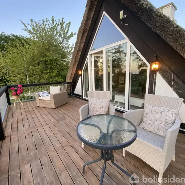 Ualmindelig smuk og perfekt beliggende ejendom ved Fjellerup Strand - med forhåndstilladelse til anvendelse som flexbolig. Her får du en fantastisk natur- og skovgrund på hele 3.848 m² i anden række til stranden og med en virkelig flot havudsigt. Ejendommen emmer af charme og kvalitet med bindingsværk, stråtag, lofter til kip og synlige bjælker - præcis den form for idyl, man drømmer om. Bygningen er nyopført i 2007 og fremstår generelt i rigtig flot og velholdt stand. Der er gulvvarme i hele huset, hvilket fuldender komforten. Her er IKKE særligt vedligeholdelses behov grundet bygningens alder og stand. Indretningen byder på et imponerende køkken/alrum/stue med loft til kip, synlige bjælker og et smukt lysindfald. Derudover findes en entré med direkte adgang til den integrerede garage, et badeværelse med bruseniche, et soveværelse med udgang til terrassen, baggang/bryggers samt endnu et badeværelse med bruseniche og en hems med sovepladser. På tagetagen ligger en stor og lys udsigtsstue i halvåben forbindelse med resten af huset samt en skøn, rummelig altan. Udenfor venter enorme terrassearealer, drivhus og shelter - kort sagt en ejendom, der skal opleves.