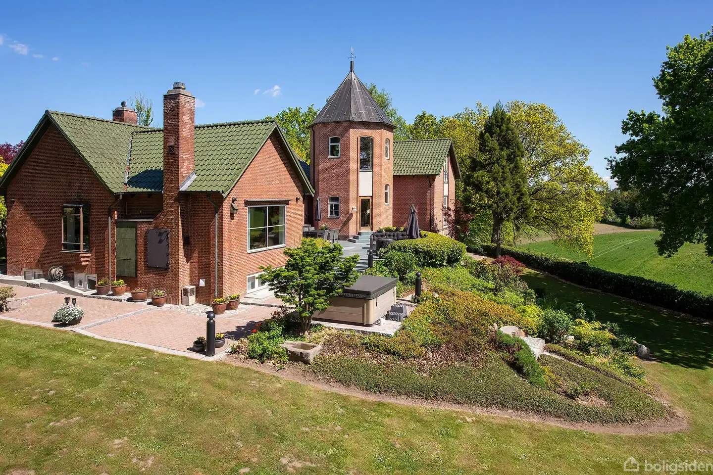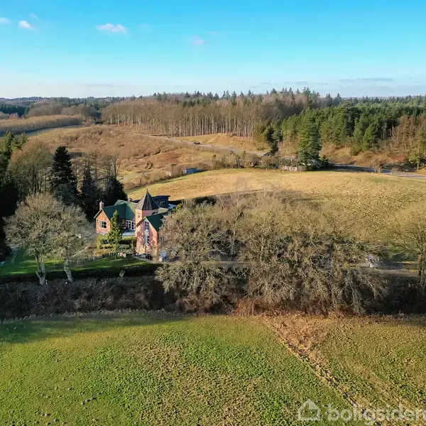 I det kuperede, skovklædte landskab ved Langesø mellem Morud og Odense ligger denne imponerende lystejendom. På grundens højeste punkt knejser bygningen med det karakteristiske tårn, hvor den får selskab af velanlagte udemiljøer og en betagende panoramaudsigt over området. Ejendommen er fra 1950, og i 2022-2023 blev den ført ind i nutiden med omhu og præcision under en gennemgribende renovering. Beboelsen består af 246 kvadratmeter, og dertil hører en 202 kvadratmeter stor kælderetage foruden en