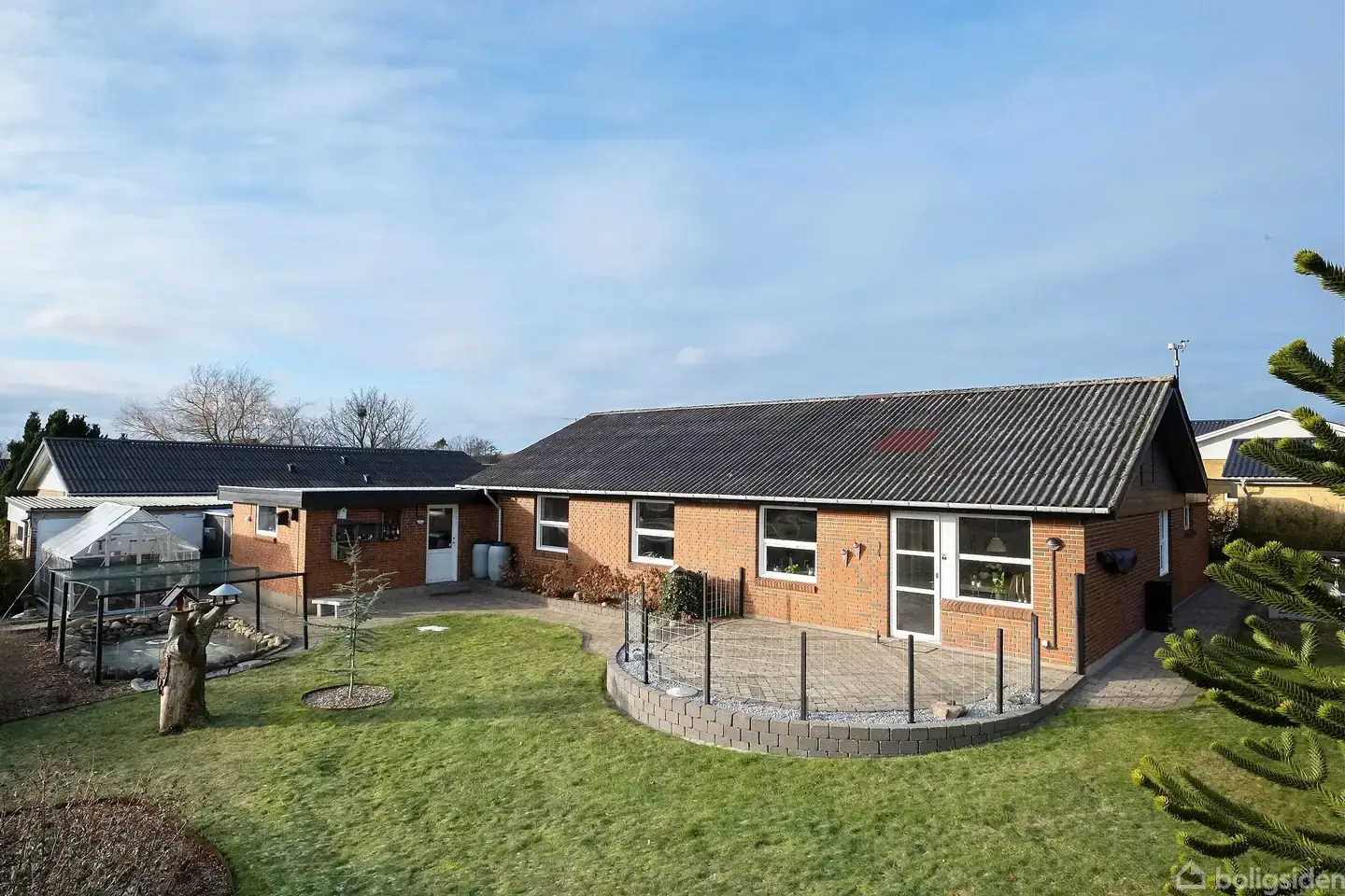 Åbent hus med tilmeldingskrav 12/2 - klik på billede - I trygge og familievenlige rammer finder I denne indflytningsklare étplansvilla, højtbeliggende med skøn udsigt ud over det bølgende landskab. Foruden sin attraktive beliggenhed byder huset på 125 veldisponerede kvadratmeter fordelt på en moderniseret planløsning i ét plan med minimal spildplads. Boligen byder indenfor i et praktisk bryggers med gulvvarme og god plads til hverdagens vasketøj, sko og overtøj. Herfra er der videre adgang til en let fordelingsgang, hvorfra I finder et fint badeværelse med bruseniche og gulvvarme, to indretningsvenlige værelser samt et forældresoveværelse med faste skabe. Fra gangen træder man videre ind i husets naturlige samlingspunkt - det hyggelige spisekøkken-alrum - ideelt til samvær om hverdagens faste måltider og med god plads til at samles omkring middagsbordet. Her byder sig desuden en nem mulighed for at etablere et yderligere fjerde værelse/kontor, hvis behovet opstår. Boligen rummer desuden hele to lyse og indretningsvenlige opholdsstuer, bestående af en hyggelig integreret havestue på 21 m² samt en stor dagligstue med masser af naturligt lysindfald og skøn udsigt over markerne. Den dragende udsigt er elegant indrammet af det store terrassedørsparti, som samtidig giver nem udgang til den skønne terrasse. Tilsammen skaber rummene de perfekte rammer, når familien skal samles og livets festligheder fejres - uanset om det er til langbordsmiddag eller havefest. Den alsidige planløsning giver flere potentielle indretnings- og anvendelsesmuligheder, med mulighed for både åbent stue-køkken-alrum - med eller uden et ekstra værelse/kontor. Huset er højt placeret på sin 798 m² store grund, som består af en let og overkommelig have, nydeligt omkranset af flere hyggelige terrassemiljøer. Her kan man altid finde en solgryde eller læ fyldt krog - og der er endda mulighed for at indrette en hyggelig udestue i det store glasdrivhus. Hertil hører også et fint overdækket cykelskur samt en praktisk garage på hele 35 m² med både værkstedsrum, plads til moderne bil og mulighed for etablering af el-lade stander. Hele boligen fremtræder meget komplet og nydeligt holdt i samme stil med et ensartet udtryk, som understøttes af den velholdte stand og attraktive beliggenhed. Så er du på boligjagt efter en velindrettet og velholdt étplansvilla i familievenlige omgivelser?-Så er Rugmarken 63 lige huset for dig!