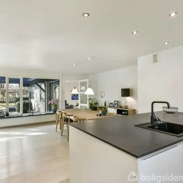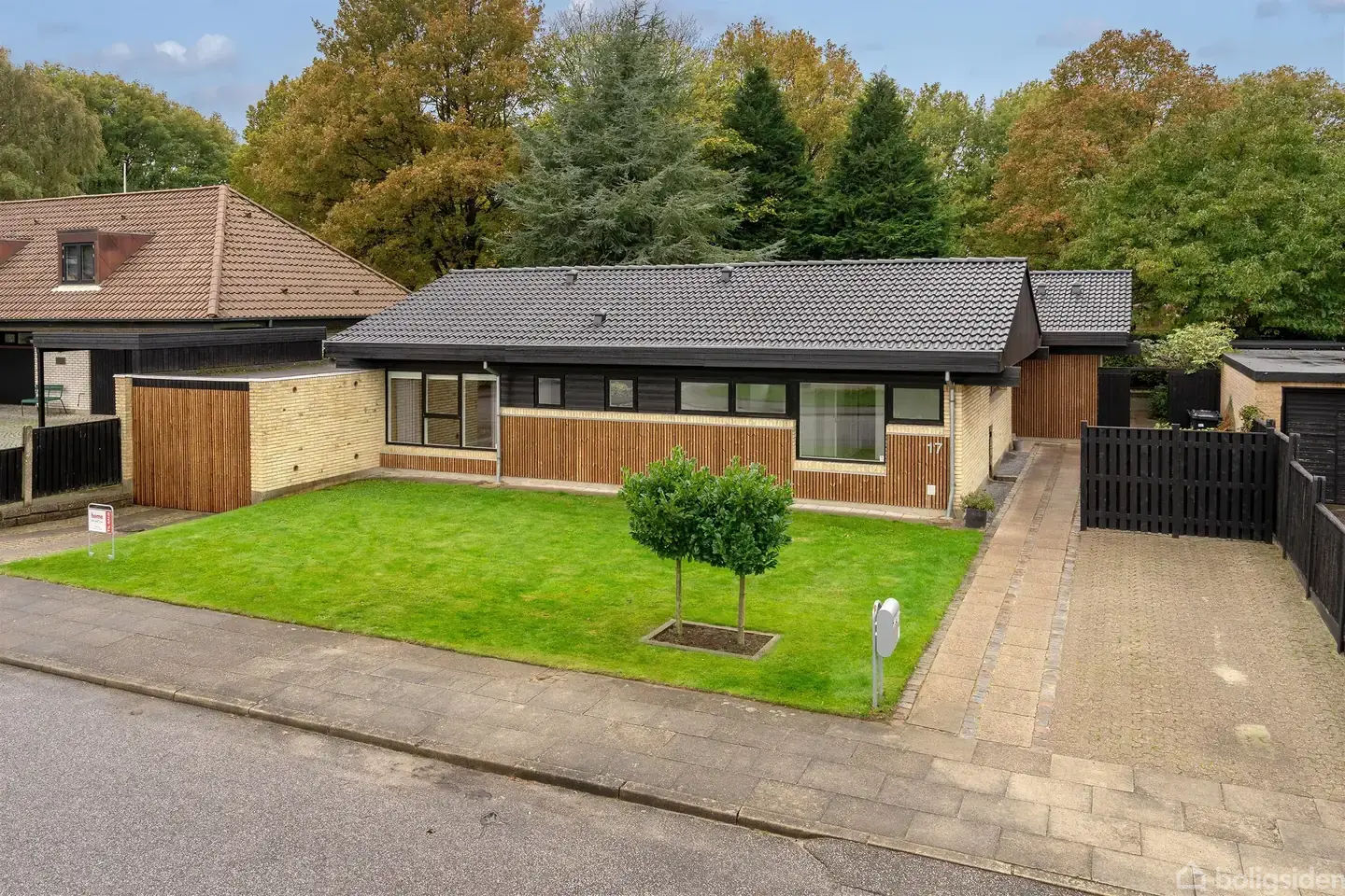 Etplansvilla på 179 m² bolig samt 97 m² høj kælder samt 31 m² garage, opført i 1965 i gule håndstrøgnemursten og med tag i røde betontagsten. Villaen har i perioden 2016-2020 gennemgået en omfattende modernisering med bl.a. træ-/alu vinduer de fleste steder, nye lofter i henholdsvis glat gips og troldtekt, laminatgulve og flotte 60x60 klinker i lys beige, nyt Kvik køkken med grebsfrie låger, flot bryggers med masser af skabe, 2 nye badeværelser etc. Her møder man også glatte filtede hvide vægge