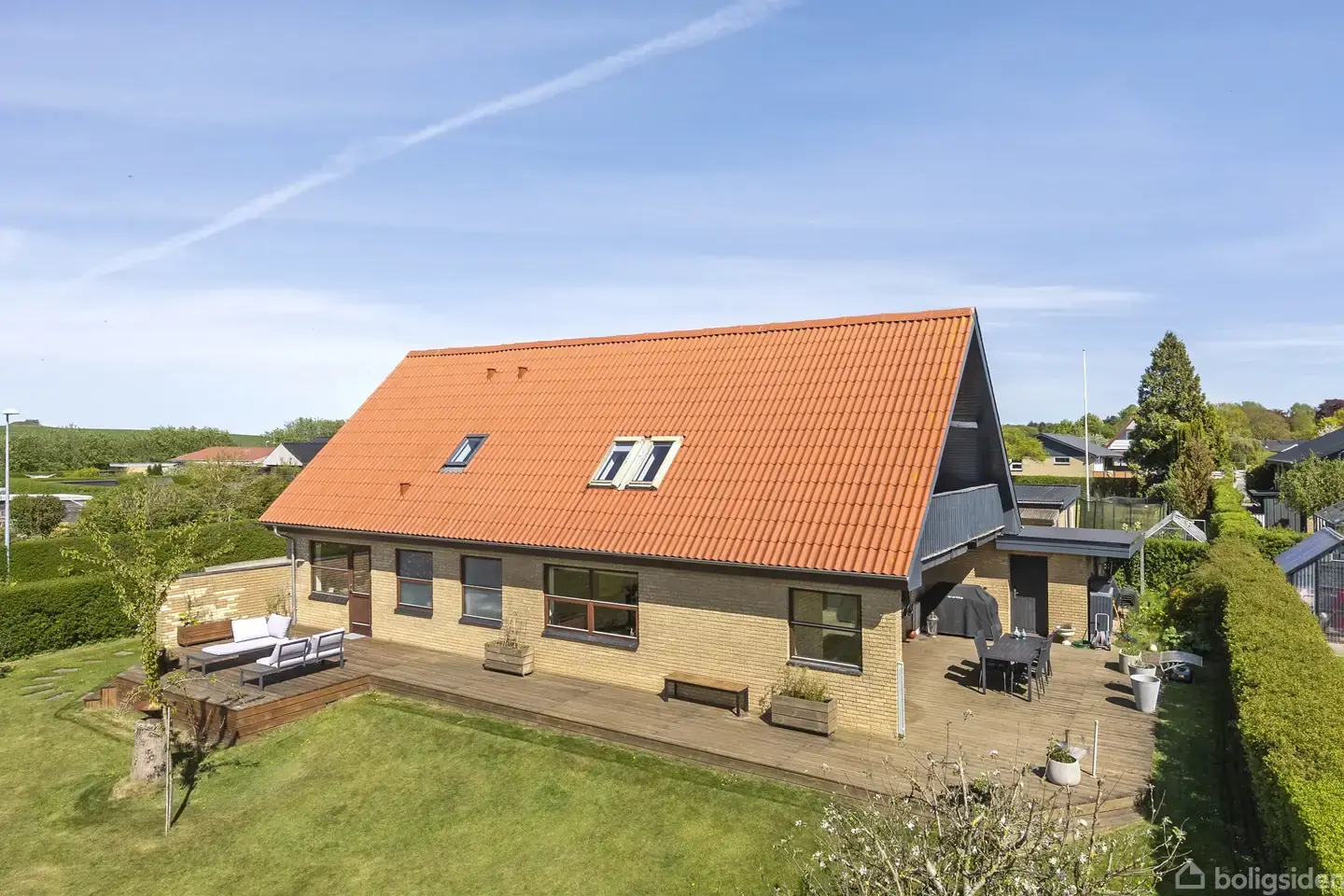 Velkommen til denne skønne og velholdte villa beliggende i et fredeligt og familievenligt kvarter i Mejlbys naturskønne omgivelser. Her får du en rummelig og indbydende bolig, som fremstår flot renoveret og helt indflytningsklar – perfekt til familien, der ønsker god plads, moderne komfort og rolige omgivelser.Boligen byder på hele 234 m² fordelt på lyse og veludnyttede rum. Hjertet i hjemmet er det store og moderne køkken-alrum, hvor der er rig plads til både madlavning og samvær. Herfra er der