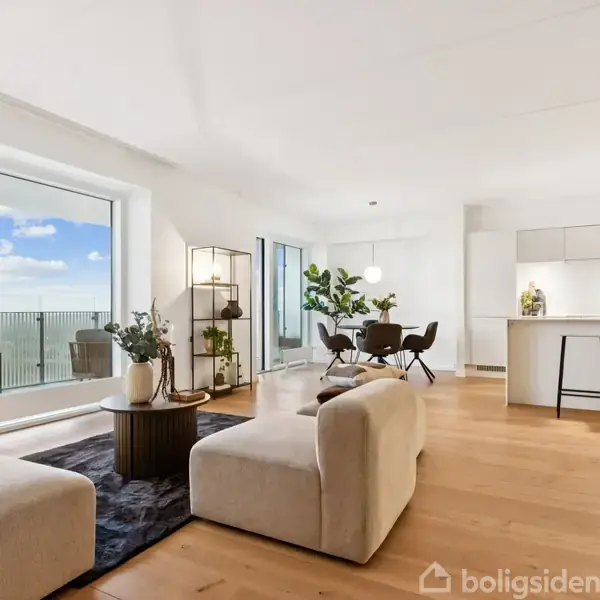 Penthouse på 15. sal med unik udsigt Velkommen til denne fantastiske lieberhaverlejlighed, på toppen af Bryggen og med udsigt så langt øjet rækker. Lejligheden byder på lækkert badeværelse, kæmpe køkkenalrum med masser af plads til både spisende gæster, lækkert sofaområde og med mulighed for at etablere kontor/ekstra værelse. Derudover har lejligheden stort soveværelse med walk in closet. Fra både soveværelse og alrum er der udgang til lejlighedens helt unikke altan, som går langs hele lejlighe