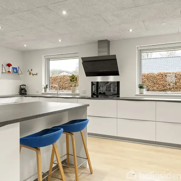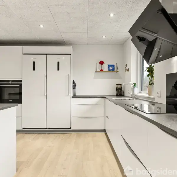 På en attraktiv adresse tæt på Videbæk bymidte finder du denne velindrettede og flot renoverede etplansvilla, der fremstår både tidssvarende, velholdt og fuldstændig indflytningsklar. Ejendommen gennemgik en stor renovering i 2019, hvor der er lagt vægt på både komfort, funktionalitet og et ensartet, moderne udtryk – en bolig, hvor der allerede er stået hånd om de store udgifter.Indvendigt bydes du velkommen i en bolig med gulvvarme i hele huset – dog undtaget værelserne – som sammen med troldte