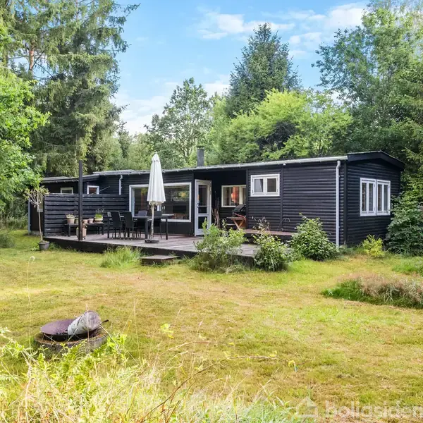 Drømmer du om en fritidsbolig i på Sandet, hvor roen sænker sig, og naturen folder sig ud lige udenfor døren, er denne bolig et oplagt valg. Her bydes du velkommen i et yderst attraktivt område, hvor grønne omgivelser og høje træer skaber en stemning af et sandt fristed. Atmosfæren er præget af fred og privatliv, langt fra byens støj og tempo, så du kan finde ro og fordybelse med fuglesang og duften af skov som naturlig baggrund. Indenfor mødes du af en velindrettet planløsning, der egner sig b