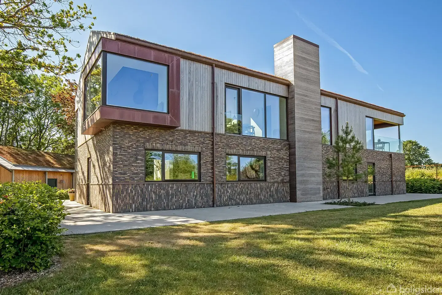 Midt i det kuperede landskab nær Taps Å med udsigt over åbne marker og opland finder I denne skønne liebhaverperle, der er ganske enestående. Den imponerende ejendom fra 2022, der er prisbelønnet med Kolding Kommunes arkitekturpris i 2022, præsenterer sig flot med masser af attraktive kvaliteter og gennemtænkte løsninger. Her er ikke gået på kompromis med kvaliteten. Petersens tegl, Kebony beklædning, kobberinddækning pryder ejendommen, der står med et klimavenligt sedum blomstertag.Fra den 13.