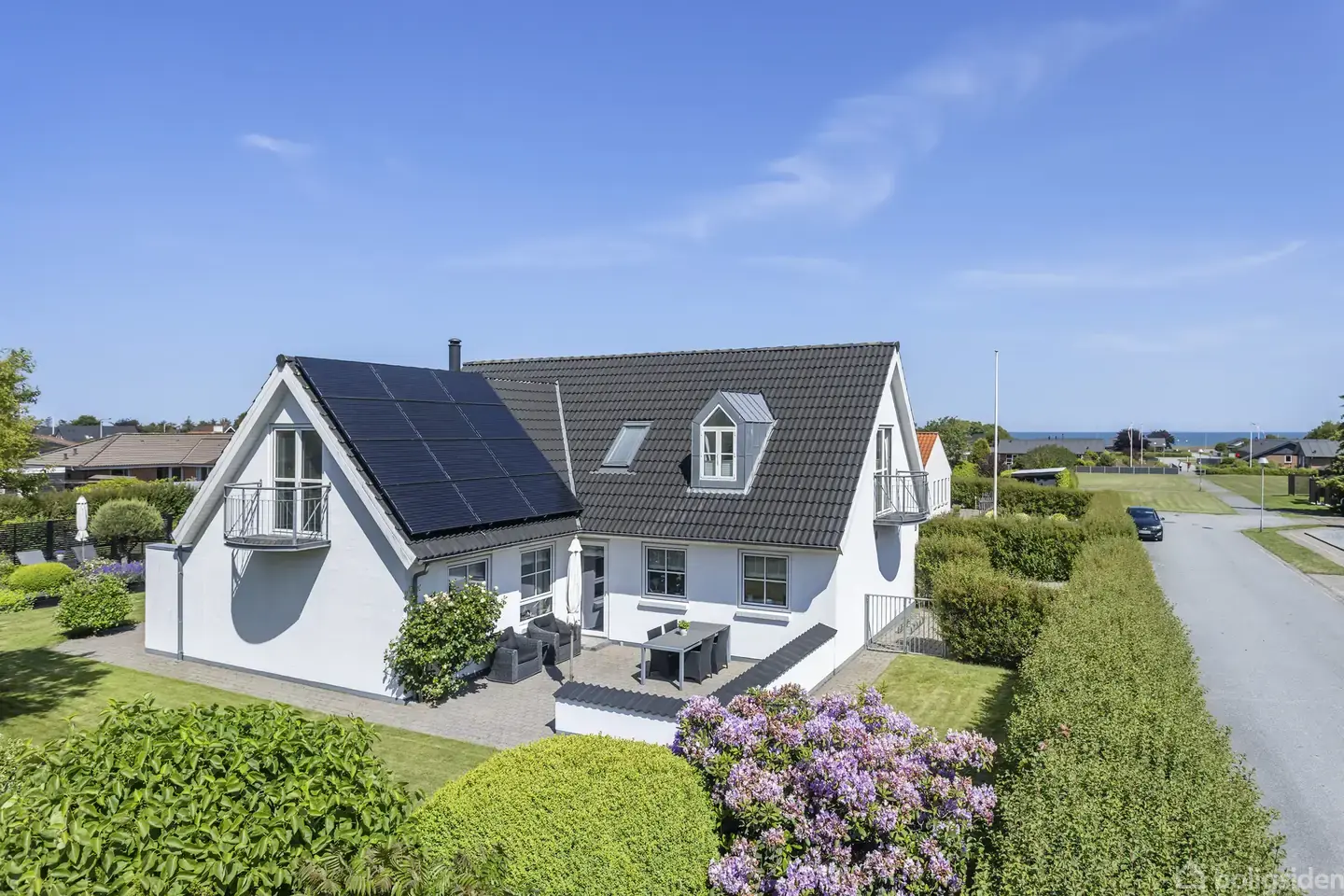Velkommen til denne gennemførte og stilfulde villa, beliggende for enden af en rolig, hyggelig stikvej i udkanten af charmerende Sæby. Her får du ikke bare et hjem – du får en livsstil. Med kun 300 meter til den fredelige strand og en betagende udsigt over havet, bliver hverdagen noget særligt.Villaen præsenterer sig smukt med sine mange kviste og en stor glaskarnap, der lukker masser af dagslys ind og skaber en harmonisk forbindelse mellem inde og ude. Den charmerende hall byder dig velkommen m