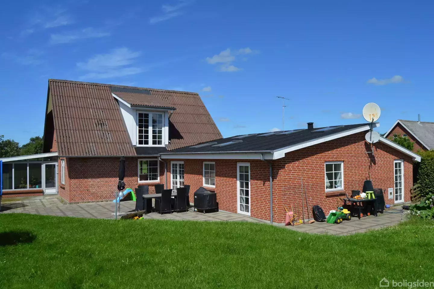 OMRÅDE: Villa beliggende i Rækker Mølle by med skole, sportshal, børnehave samt i nærheden af Rækker Mølle Gården, det flotte Bryghus samt Ganer Å. BOLIGEN: Solidt opført i røde sten med eternittag i 1931 og senere tilbygget med 85 kvm. "udhus" i 2008 i røde sten med tagpap som er indrettet til stor bryggers, badeværelse, gennemgangskontor, installationsrum samt garage. I 2008 fik den resterende del af villaen ligeledes en gennemgribende renovering således standen fremstår god og indflytningskla