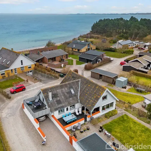 Sælvig 44 er en flot og velholdt villa beliggende kun 100 m fra stranden. Fra flere af husets rum – herunder de to skønne terrasser på 1. sal har du en flot udsigt til havet og de smukke solnedgange. Fra huset er der gåafstand til havnen, hvorfra færgerne sejler til både Hou og Aarhus C. Huset er rummeligt og har en funktionel indretning, der skaber en behagelig ramme om hverdagen. Det velholdte køkken er lyst og har god opbevarings- og bordplads. Det ligger i åben forbindelse med spisepladsen og den ene af husets stuer. Rummene er ensartet med flotte synlige loftsbjælker. En brændeovn ved overgangen til stuen tilfører varme og hygge. Den anden stue ligger et par trin nede og har en indbydende atmosfære med gulvvarme og store vinduespartier, der giver et skønt lysindfald og udsigt til haven – næsten som en havestue. Desuden er der herfra udgang til en stor og delvis overdækket sydvendt terrasse. Ved husets oprindelige entré ligger det ene af de to badeværelser. Det er rummeligt og indrettet med bruseniche samt et praktisk walk-in-område med god plads til opbevaring. Derudover er der gulvvarme, som sikrer ekstra komfort. Husets fire værelser er placeret på 1. salen, hvor to af dem har udgang til tagterrasser. Herfra kan man virkelig mærke nærheden til vandet og nyde de flotte solnedgange over området. Terrasserne indbyder til mange hyggelige timer under åben himmel. Alle værelser er rummelige og har tæppebelagte gulve. Derudover rummer etagen et mindre badeværelse, hvilket giver ekstra komfort og gør boligen ideel til både den store familie og gæster. Huset opvarmes af en luft/vand-varmepumpe der kun er få år gammel og som sikrer en energieffektiv opvarmning. Derudover bidrager en brændeovn samt en luft/luft-varmepumpe ved spisepladsen i køkkenet som supplerende varmekilder. Den hyggelige have er smukt anlagt med græsplæne og flere små kroge, hvor du kan finde læ og nyde solen hele dagen. Der er på grunden gode udhuse, der kan anvendes til opbevaring, værksted eller hobbyaktiviteter. Beliggenheden er yderst praktisk. Du er tæt på færgeforbindelserne til både Hou og Aarhus C, hvilket gør det nemt at komme til og fra øen – uanset om du pendler eller blot ønsker let adgang til fastlandet. Fra Sælvig er der cykelsti, der forbinder mange af de største landsbyer på Sydøen samt Nordøen, hvilket gør det nemt at komme rundt på øen på to hjul. Samsø byder desuden på et aktivt lokalsamfund, hyggelige landsbyer, gode spisesteder og en afslappet ø-stemning. Sælvig 44 er en bolig, der skal opleves. Her får du en fantastisk kombination af havudsigt, kort afstand til stranden, en stort og velholdt ejendom og en beliggenhed, der gør det let at komme rundt.