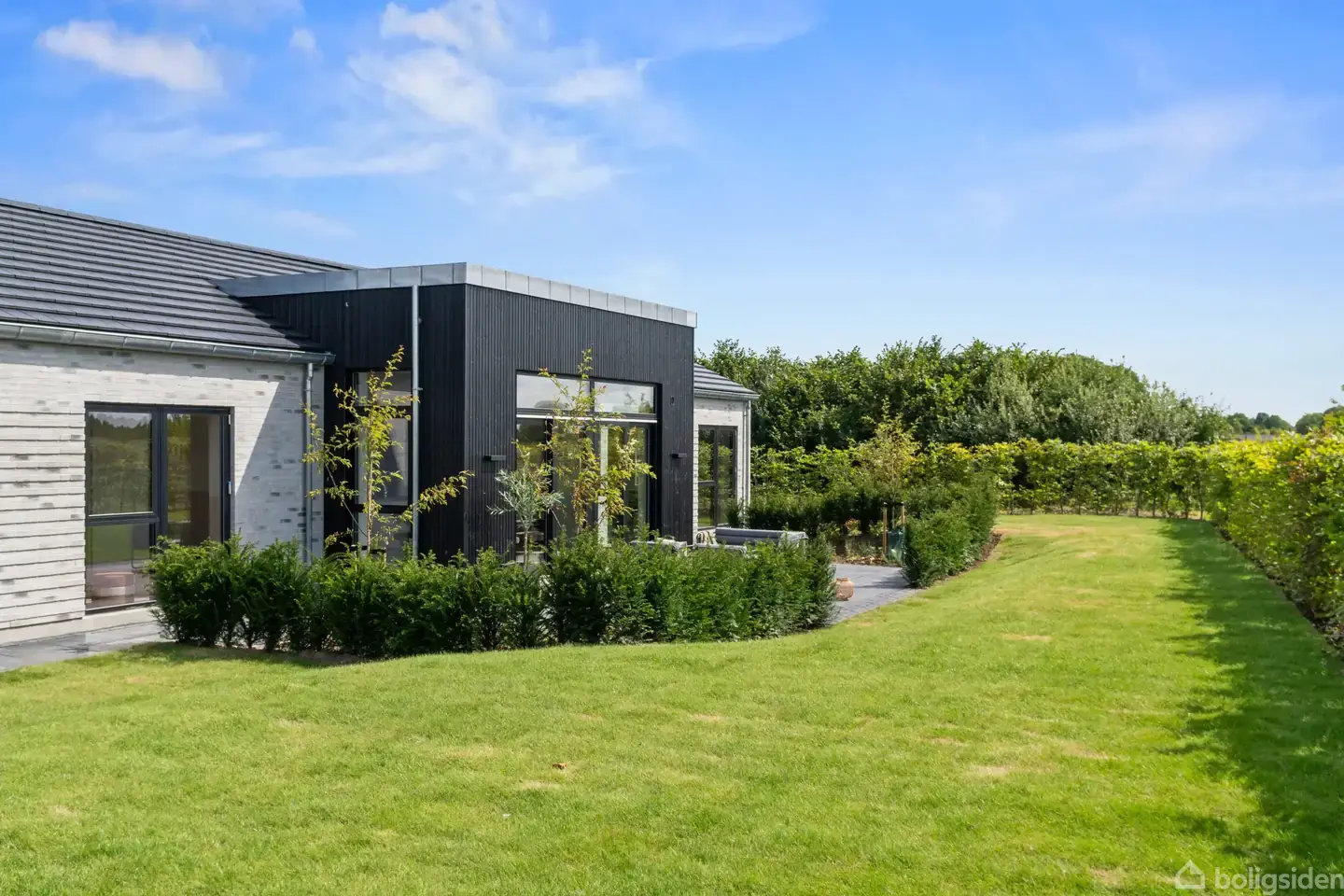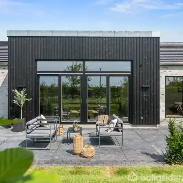 Tidløst og moderne vinkelhus med dobbelt garage og gennemtænkt planløsning