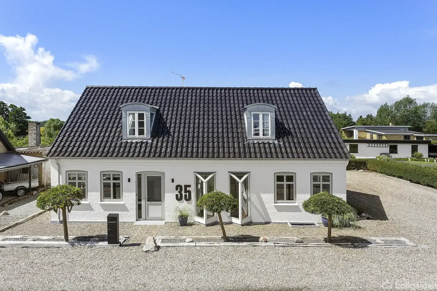I Salbrovad venter denne rummelige og indflytningsklare villa på nye ejere – et hjem, hvor hverdag og fritid får optimale rammer. Villaen præsenterer sig med hvidmalet facade og smukt tegltag, hvilket straks fanger blikket og sikrer et elegant førstehåndsindtryk. Huset er løbende vedligeholdt, og taget fra 2012 giver mange års tryghed på denne front. I hjemmet er der indlagt fiberbredbånd, så både hjemmearbejde, streaming og gaming kan klares uden problemer. Indenfor fordeler villaen sig over t