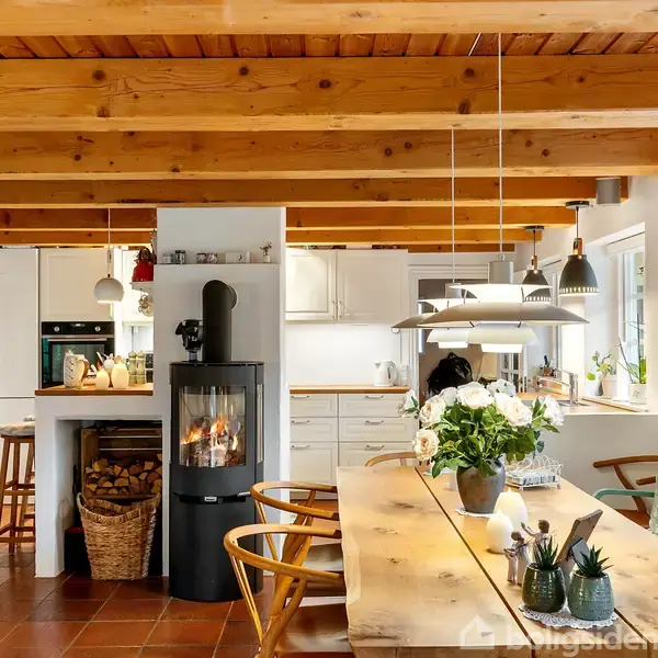 Sommeridyl på Salgårdshøjvej 24 i fredelige Vejby Strand, hvor en gammel gård fra 1800-tallet brændte ned og blev genopbygget i 80'erne i samme stil og udtryk som den oprindelige ejendom. Sommerhuset her er derfor et gedigent byggeri fra 1986 med samme stil, charme og udtryk som den oprindelige gamle gård. Sommerhusets stråtag er fra 2019 og udført med brand-dug. Indenfor er der fokus på materialer og planløsning. Loftshøjden er god, og de fritlagte bjælker skaber sammenhæng i boligen. Det sto