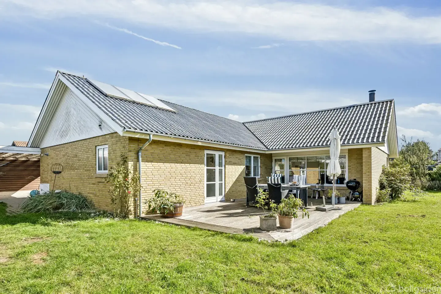 På Sandbakken 7 finder du en villa, der kombinerer en funktionel og fleksibel planløsning med en beliggenhed tæt på hverdagens faciliteter. Her er der god mulighed for nemt at ændre rummenes indretning, så hjemmet kan tilpasses præcis jeres behov - både nu og i fremtiden. Indenfor byder boligen på en stor og lys stue, hvor der både er plads til spiseafdeling og sofaarrangement. Fra stuen er der direkte udgang til haven og terrasse, hvor udelivet kan nydes. Køkkenet ligger centralt i boligen og har ligeledes plads til et spisebord, så der er god mulighed for at samle familie og gæster. Huset rummer tre regulære værelser, der kan bruges som børneværelser, kontor eller soveværelse alt efter behov. Hertil kommer et badeværelse med bruseniche, et gæstetoilet og et praktisk bryggers med egen indgang og plads til vaskefaciliteter – en funktionel detalje i en travl hverdag. Udenfor er der en carport med tilhørende hobbyrum samt en have, der er overskuelig og nem at holde. Med flere terrasser er der altid et sted at finde sol eller skygge. En god mulighed for jer, der ønsker et hjem med plads til familien - og hvor I samtidig kan skabe drømmehjemmet.