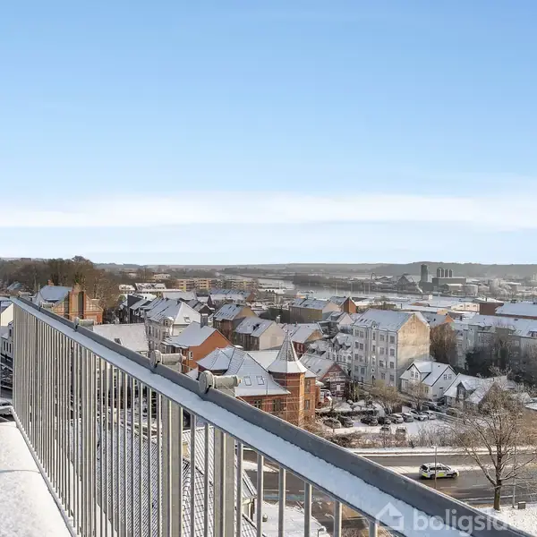 Smukt og højt beliggende finder du denne arkitektonisk perle, hvor man har tænkt sig godt om inden man gik i gang med at bygge ejendommen.Her er så mange smukke detaljer både hvad angår energi, indretning og ikke mindst alle fællesfaciliteterne - HER ER ALT DET SOM DU MANGLER EFTER DU HAR SOLGT DIN VILLA. Her er plads til store fester og overnattende familie.Her kan nævnes:Egen p-plads i aflåst garage med elevatorTagterrasse med fremragende udsigt over fjord og bySolceller - utrolig energivenlig