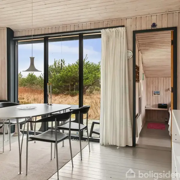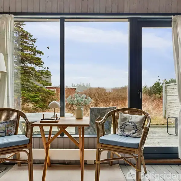Naturskønt og ugeneret fritidshus tæt på strand Velbeliggende fritidshus på 76 m² med 5 m² integreret udhus samt et udhus med egen terrasse. Huset er omgivet af gode, læfyldte terrasser mod øst, syd og vest. Sommerhuset ligger for enden af en blind vej på en 1.250 m² let kuperet naturgrund, blot få hundrede meter fra en attraktiv badestrand. Der er kort afstand til golfbane, klitplantage, ishus og Hirtshals by samt gode vejforbindelser mod Aalborg og Aarhus. Huset er opført i 1973 og tilbygge