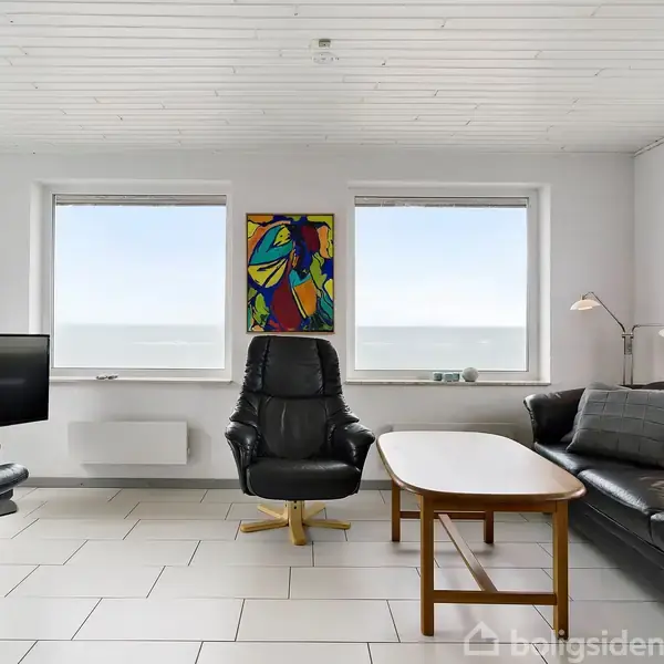 Åbent hus med tilmeldingskrav 2/2 - klik på billede - HUSET LIGGER I ABSOLUT FØRSTE KLITRÆKKE MED UDSIGT UDOVER DET BRUSENDE VESTERHAV FRA ALLE RUM. Højtliggende, hvidmalet murstenshus med valmede gavle og rødt cementstenstag og hvide plasttermoruder. Huset er opført i 1986 og er på 119 m2 samt overdækket carport på 21 m2. Noteret som helårsbolig, men anvendes som fritidshus. Huset indeholder: Entre m/store, hvide gulvklinker, badeværelse med spa, bordarrangement, bruser og lyse gulvklinker samt ekstra badeværelse med sauna, bruser og lyse klinker. 3 soveværelser med dobbeltsenge og stort køkken-alrum med egefyldningselementer, lyse gulvklinker og alt i hvidevarer. Der er åben forbindelse til fjernsynsstuen med store, lyse gulvklinker, med brændeovn og varmepumpe samt med adgang til 2 terrasser med udsigt over havet. Nuværende ejer har sørget for sikring af beliggenheden tæt på havet. Der er i 2017 investeret 500.000 kr. i kystsikring, samt nyt inventar. Herudover er der i 2019 betalt 450.000 kr. for deltagelse i yderligere kystsikring. Hård kystsikring er færdiggjort i 2024 med sandforing. Der er lavet sokkel i 4 meters dybde 30 meter rundt inkl. 700 m stål. Læ foranstaltning ved begge terrasser, panserglas og rustfrit stål. Yderligere informationer herom gives på anfordring. Huset fremtræder i dag med nye vinduer, nye møbler, nye senge, nyt fjernsyn, nyt køleskab, nyt varmeanlæg inkl. varmepumpe, ny brændeovn med ny skorsten. Sælges inkl. alt indbo. Fritidshuset er udlejet via bureau, og lejekontrakten skal respekteres. I 2021 har huset været udlejet for kr. 246.833 + forbrug (el - vand er inkl. i lejen) I 2022 har huset været udlejet for kr. 263.229 + forbrug (el - vand er inkl. i lejen) I 2023 har huset været udlejet for kr. 204.389 + forbrug (el - vand er inkl. i lejen) I 2024 har huset været udlejet for kr. 206.276 + forbrug (el - vand er inkl. i lejen)