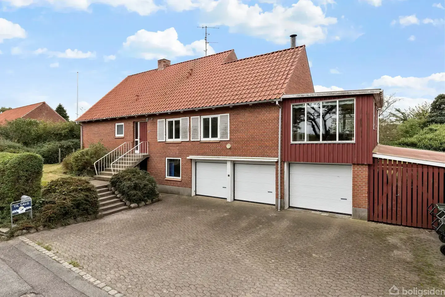 Åbent hus med tilmeldingskrav 4/2 - klik på billede - Solid murermestervilla med masser af plads. Er drømmen en rummelig og særdeles solid murermestervilla med plads til hele familien, så er denne villa i Voldby et rigtig godt bud. Her får man hele ca. 304 m² fordelt på stue, 1. sal og en høj, lys kælder – samt en stor garage på 53 m². Villaen fremstår meget velholdt, er opført i klassiske røde sten med tegltag, og størstedelen af vinduerne er udskiftet til vedligeholdelsesfrie løsninger. Haven er overskuelig og nem at holde med græsplæne, småtræer og buske – perfekt til dig, der ønsker en grøn ramme uden for meget vedligehold. Indretning: Stueplan byder på en rummelig entré, hele fire værelser samt en spisestue i åben forbindelse med et lyst og indbydende køkken. Her er smukke gulve, der går igen i den hyggelige opholdsstue med udgang til en skøn udestue. Hertil et pænt badeværelse med badekar. 1. sal rummer et stort, lyst fællesrum/disponibelt rum, der også kan anvendes som værelse, samt endnu et værelse. Begge rum prydes af flotte, afhøvlede trægulve. Kælderen er høj og lys med gode disponible rum, der giver mange anvendelsesmuligheder – oplagt til hobby, opbevaring eller teenageafdeling. Her findes også et mindre vaskerum. Garage på hele 53 m² med tre alu-porte giver rigelig plads til biler, værksted eller opbevaring.
