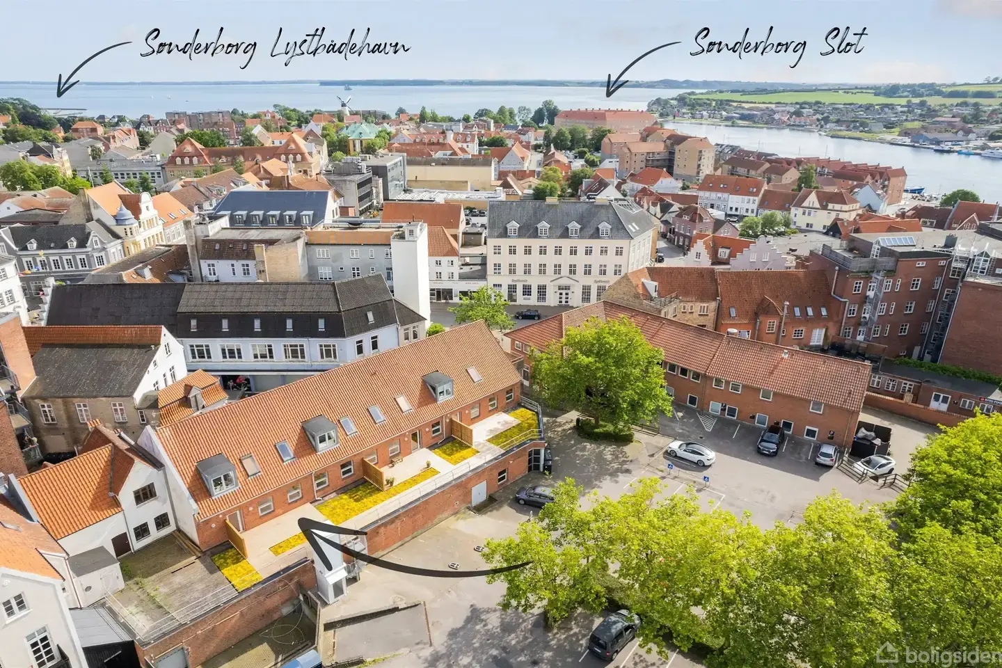 Drømmer du om at bo centralt i Sønderborg med gåafstand til alle byens mange tilbud? Og må det gerne være i en lys og rummelig bolig med egen terrasse? Så er denne 4V’er på Sankt Jørgens Gade et oplagt match! Lejligheden ligger på første sal i en ejendom fra 1982, hvor førstesalen er i 2024 indrettet til tre ejerlejligheder.Fra opholdsarealet er der direkte adgang til en stor, højtliggende terrasse, der virkelig får boligen til at skille sig ud. Her får du et fantastisk uderum med masser af pla