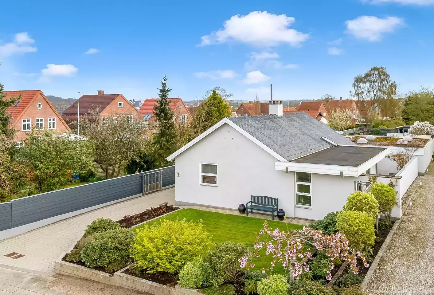 I den sydlige del af Haderslev tæt på alle hverdagens fornødenheder, finder vi denne hyggelige villa i forskudte plan på Sankt Jørgens Vej. Her er gåafstand til byens butikker og ikke mindst skoler og daginstitutioner. Vi bydes velkommen i entré med trappeforløb. Dejligt køkken i hvide elementer og i åben forbindelse til alrummet, så hele familien kan samles omkring madlavningen og mulighed for at invitere familie og venner på middage. Stuen giver gode muligheder for at arrangere et hyggeligt s