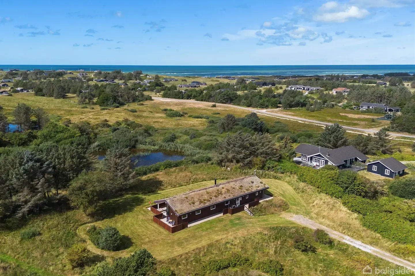 Dette rummelige og velholdte sommerhus byder på alt, hvad man kan ønske sig til afslappende ferier og hyggelige fridage. Huset er opført i 2006 og fremstår stadig i fremragende stand, både ude og inde. Boligen ligger højt placeret på en smuk, kuperet naturgrund, omgivet af fantastisk natur – lige uden for vinduerne. Indendørs finder du en lys og indbydende atmosfære med hele fire gode soveværelser og to lækre badeværelser, begge med gulvvarme – det ene desuden udstyret med både sauna og spabad. Husets hjerte er det store opholdsrum med et stilrent, åbent køkken og en dejlig stue, der indbyder til fælles hygge. Udendørs er der flere skønne terrasser – herunder en overdækket, som forlænger sæsonen og giver mulighed for udendørsliv i al slags vejr. Et isoleret, integreret udhus giver ekstra praktisk opbevaringsplads. Grunden er noget helt særligt – højt beliggende med udsigt og adgang til enestående natur. Området omkring Kettrup Bjerge er kendt for sine brede sandstrande, den rå vestjyske charme og ikke mindst Vesterhavet. Gå en tur ned til de historiske tyske bunkers for enden af vejen – det perfekte sted at nyde et glas vin i solnedgangen. Et skønt fritidshus med høj komfort og masser af plads – ideelt til både egen nydelse og eventuel udlejning.