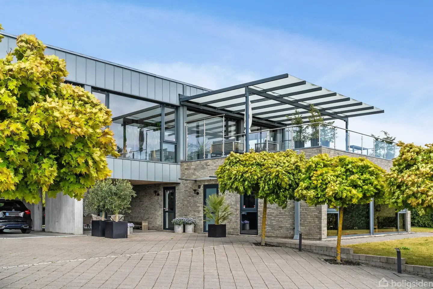 I den nordlige del af Næstved ligger denne smukke villa, der på grund af den helt unikke arkitektur og den højt hævede position i terrænet toner frem med en uforlignelig udsigt over byen og landskaberne. Huset blev opført i 2007, og det moderne udtryk fornægter sig hverken inde eller ude. De store vinduespartier, som kendetegner huset, understøtter den fantastiske udsigt og det helt fænomenale lysindfald. Boligens anseelige størrelse med 344 kvadratmeter er fordelt på to etager med 5 gode værels