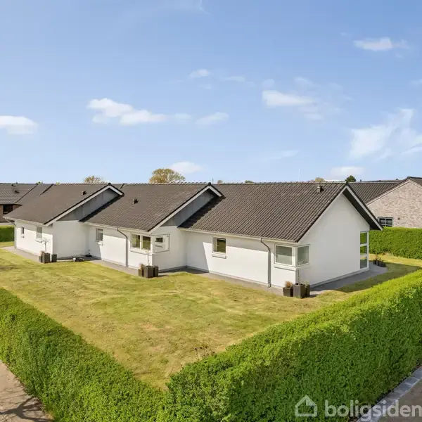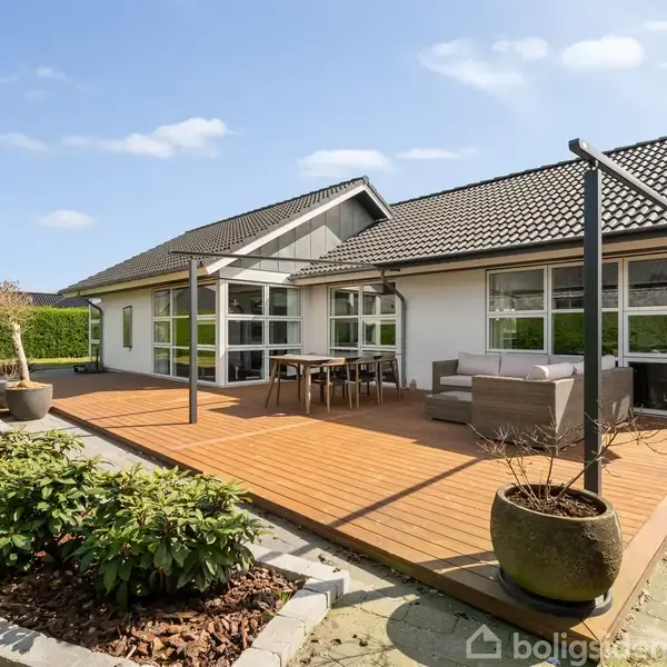 Åbent hus med tilmeldingskrav 3/2 - klik på billede - Lys, luft og rene linjer går op i en højere enhed i denne arkitekttegnede villa fra 2007. Huset ligger på en lukket vej i Alslev, som er et af de områder nær Varde, der især tiltrækker børnefamilier - og det er forståeligt. Her er nemlig trygge rammer, et godt lokalmiljø og kort afstand til hverdagens bekvemmeligheder. Samtidig får I et hjem, der er utrolig gennemført og stilrent i udtrykket. Huset er tegnet af en arkitekt fra lokalområdet, som har haft fokus på både funktion, æstetik og i særdeleshed luft og lys - og resultatet er et hjem, der både imponerer og giver følelsen af, at man får et kram, når man træder indenfor. Lofterne, der går helt til kip, og de store vinduespartier skaber en skøn rumfornemmelse, mens mørke klinker, hvide, ubrudte flader og afdæmpede nuancer fuldender den minimalistiske stil. I alt får I hele 171 m2 at indrette jer på, og disse er fordelt med tanke på både samvær og privatliv. Midt i huset ligger det store køkken-alrum, som er hjemmets naturlige omdrejningspunkt. Her samles man under de høje lofter til madlavning, måltider og ikke mindst samtale, som kan fortsætte i den hyggelige stue ved siden af. I den ene ende af huset ligger en børneafdeling med to værelser og eget badeværelse, mens forældreafdelingen er placeret i modsatte ende med soveværelse og privat bad. Derudover får I et ekstra værelse, en veludformet entré i forbindelse med et bryggers, der tilbyder gode muligheder for opbevaring. Villaen er opført på en 806 m2 stor grund, som er nem at holde og smukt afskærmet, så både børn og voksne kan nyde udelivet i fred og ro. Her er god plads til både trampolin, blomsterbede, grill og afslapning - og fra alrummet træder I direkte ud på en superflot træterrasse, som ligger perfekt i forhold til solen. Alslev er en hyggelig landsby blot 10 minutter fra Varde. Her er et stærkt lokalt fællesskab, skole, daginstitution og gode fritidstilbud. Her får I med andre ord en spændende, arkitekttegnet og 100% indflytningsklar kvalitetsvilla, hvor stil og funktionalitet går hånd i hånd. Bestil en fremvisning hos EDC i Varde.