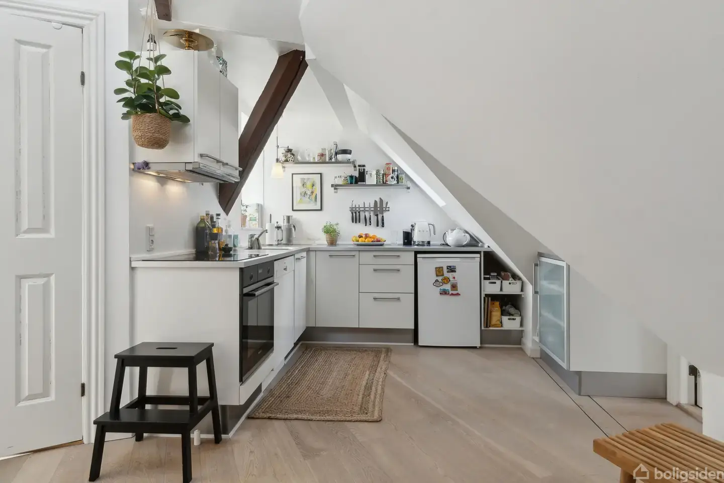 home Aarhus har nu fornøjelsen af at byde velkommen til denne skønne og charmerende 3-værelses lejlighed beliggende på det attraktive Frederiksbjerg. Lejligheden er beliggende i en gedigenejendom fra 1913. Her finder du en ejerforening med fine faciliteter som vaskeri, tørrerum, tremmerumog fantastisk aflukket gårdmiljø med bl.a. grill til rådighed. Lejligheden indeholder:• Dejlig lys stue loft til kip med synlige hanebåndsbjælker charmerende alkove, smukkeste vinduespartier rig mulighed for at