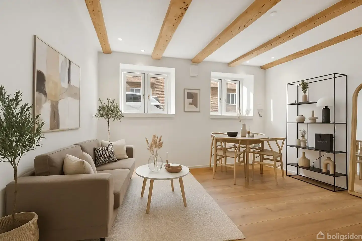 Toprenoveret lejlighed med synlige bjælker