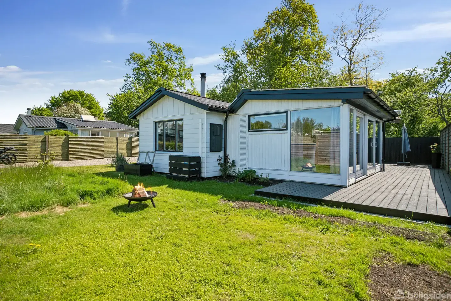 Drømmer I om at eje et sommerhus med både sjæl og moderne komfort, få skridt fra én af Fyns mest eftertragtede badestrande? Så er dette skønne fristed ved Hasmark Strand noget for jer. På en rolig stikvej, hvor I kan høre bølgerne slå mod kysten og skimte havet for enden af vejen, ligger dette hvidmalede sommerhus omkranset af frodig biobeplantning – en ægte oase med både charme og privatliv. Her er der skabt perfekte rammer for både afslapning og socialt samvær med flere skønne terrassemiljøer